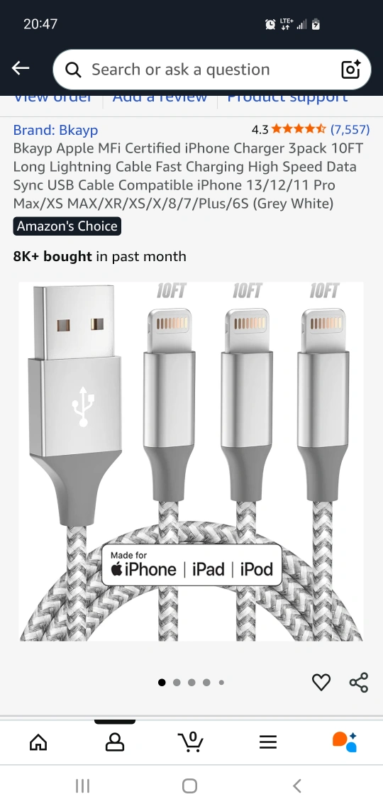 Selling a 3-pack of Bkayp Apple MFi Certified iPhone chargers! These are 10FT long lightning cables, perfect for fast charging and high-speed data syncing. Compatible with iPhone 13/12/11 Pro Max/XS MAX/XR/XS/X/8/7/Plus/6S (Grey White). They're new and ready to go!