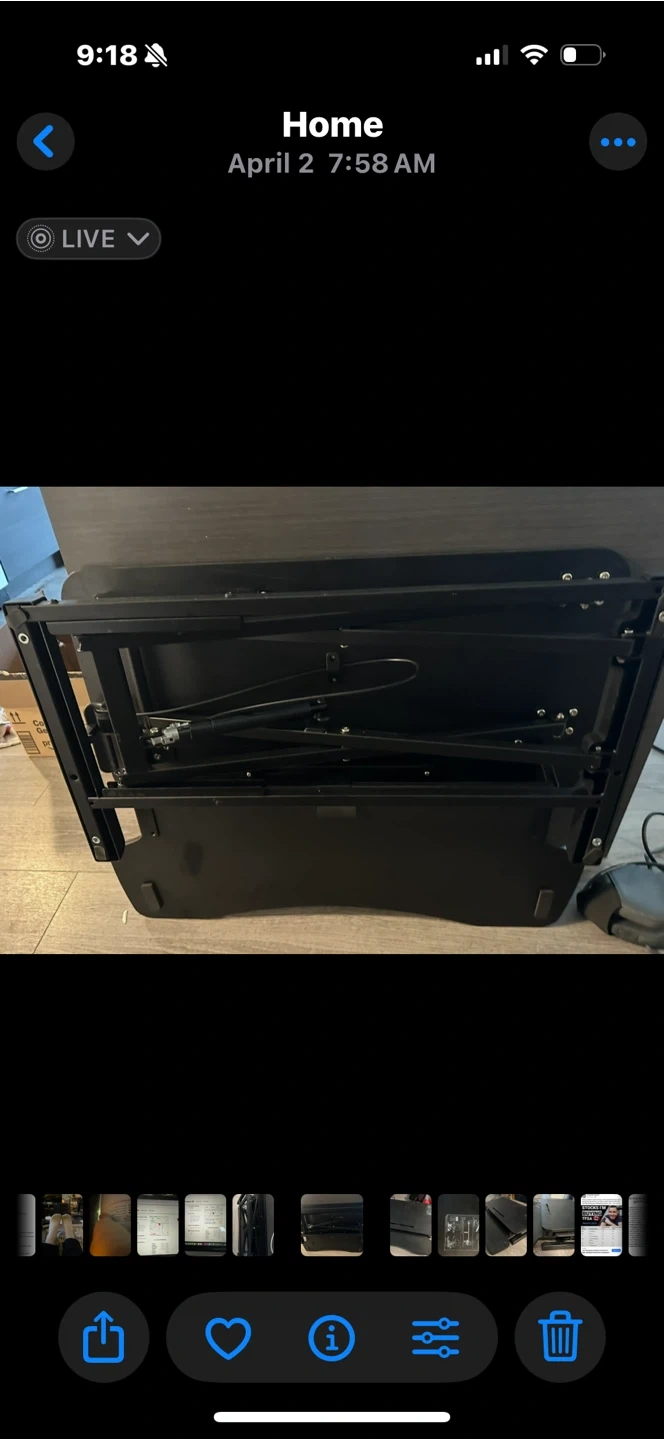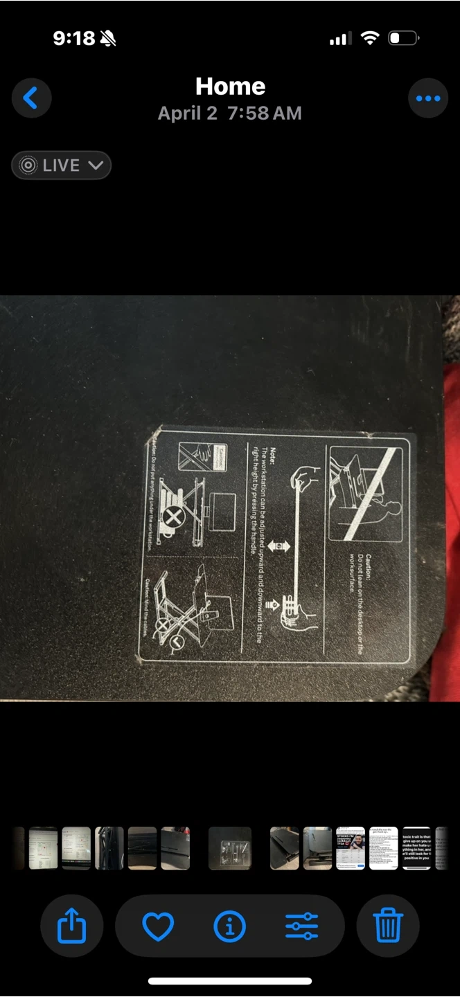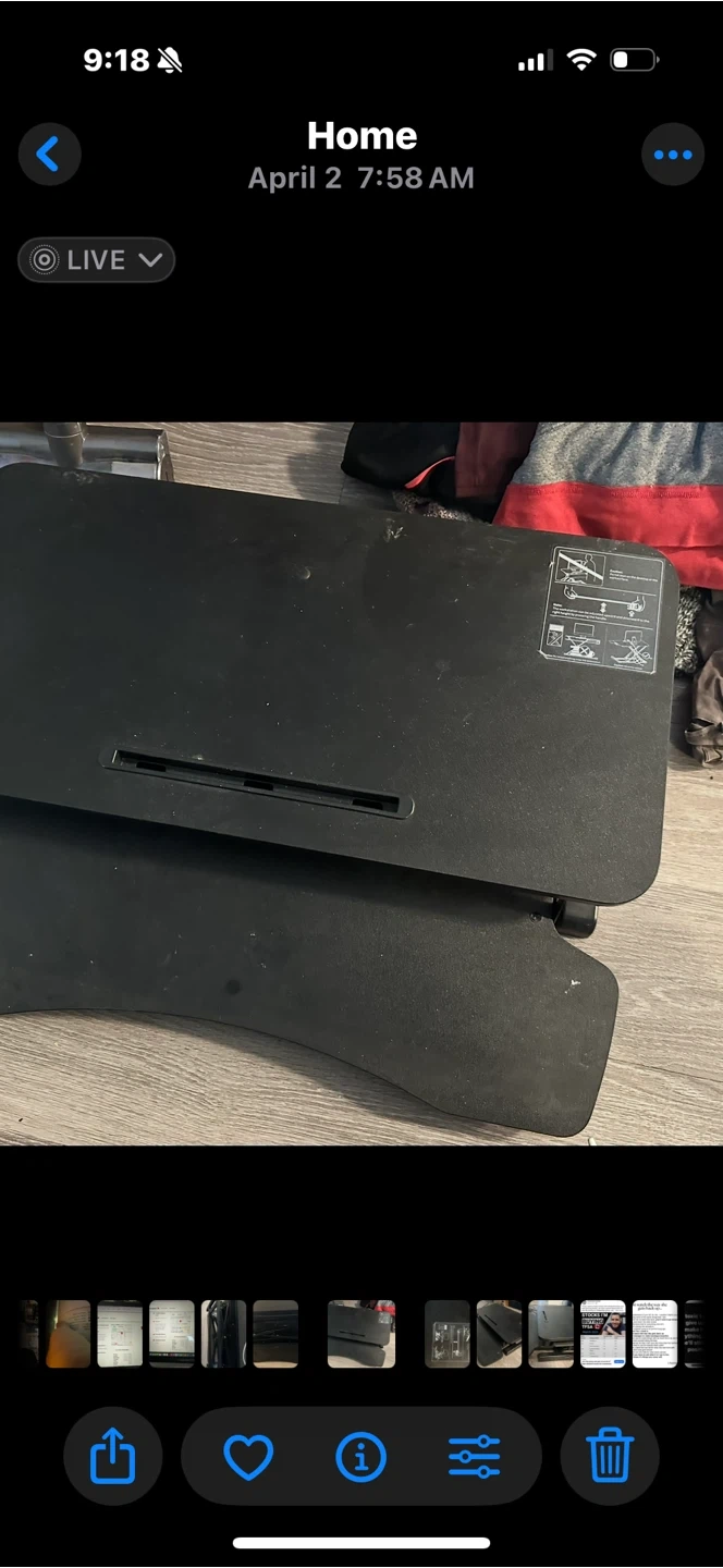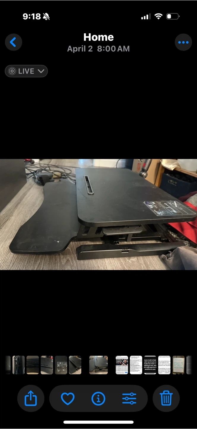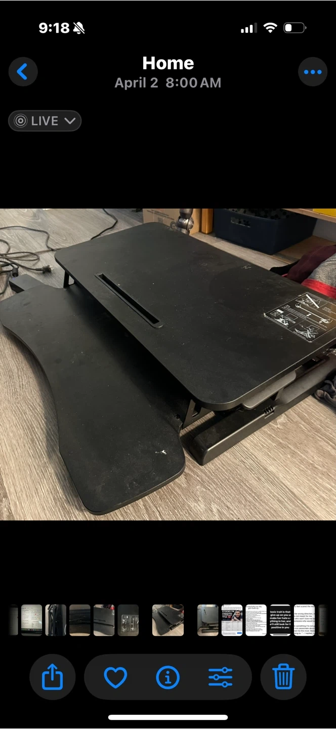Selling a black adjustable standing desk. It's in used condition but still works great. Perfect for working from home or for anyone who wants to be able to stand while they work! It is adjustable to different heights, so you can find the perfect position for you Black standing desk raiser. 31.5 long by 16 wide with keyboard platform