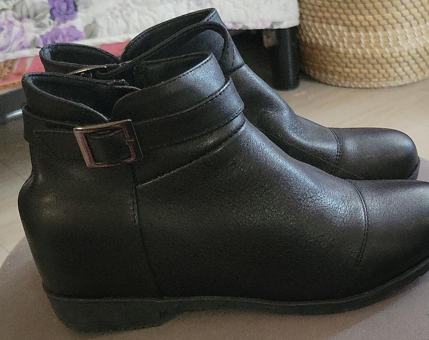 Selling a pair of size 8, black ankle boots. They have a buckle detail and a small heel. Perfect for fall!