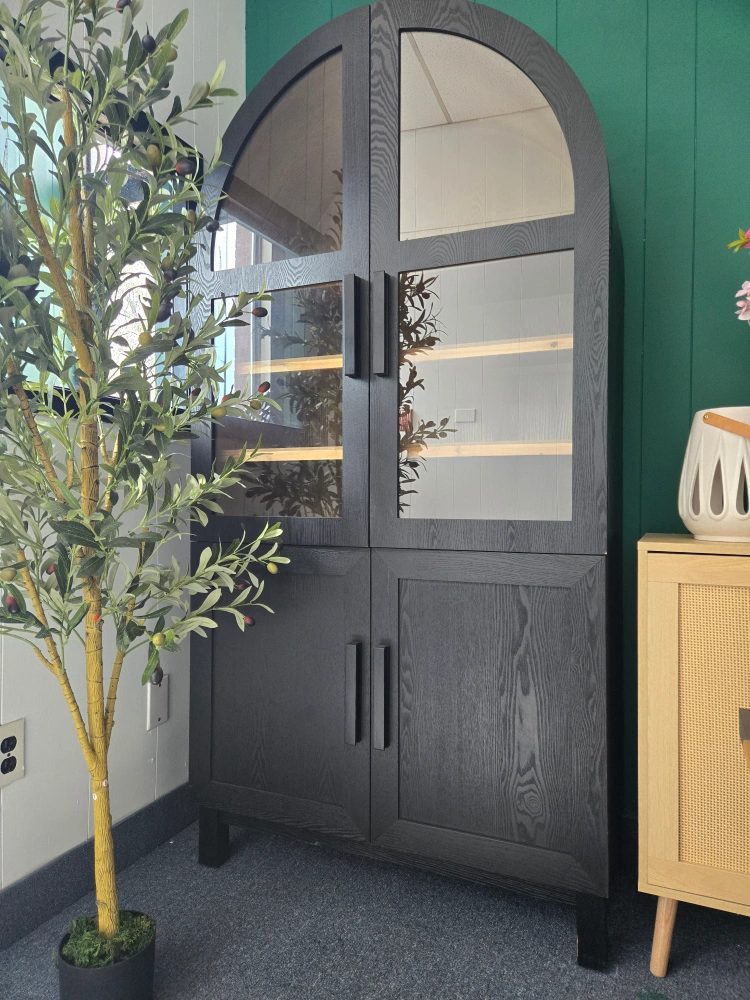 Selling a lovely black arched display cabinet! Warehouse sale floor model. check Instagram: ardynamic. Perfect for showcasing your favourite items or storing essentials with a touch of elegance