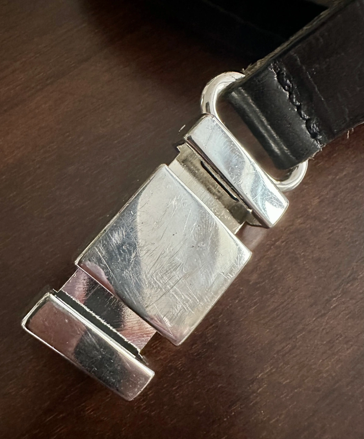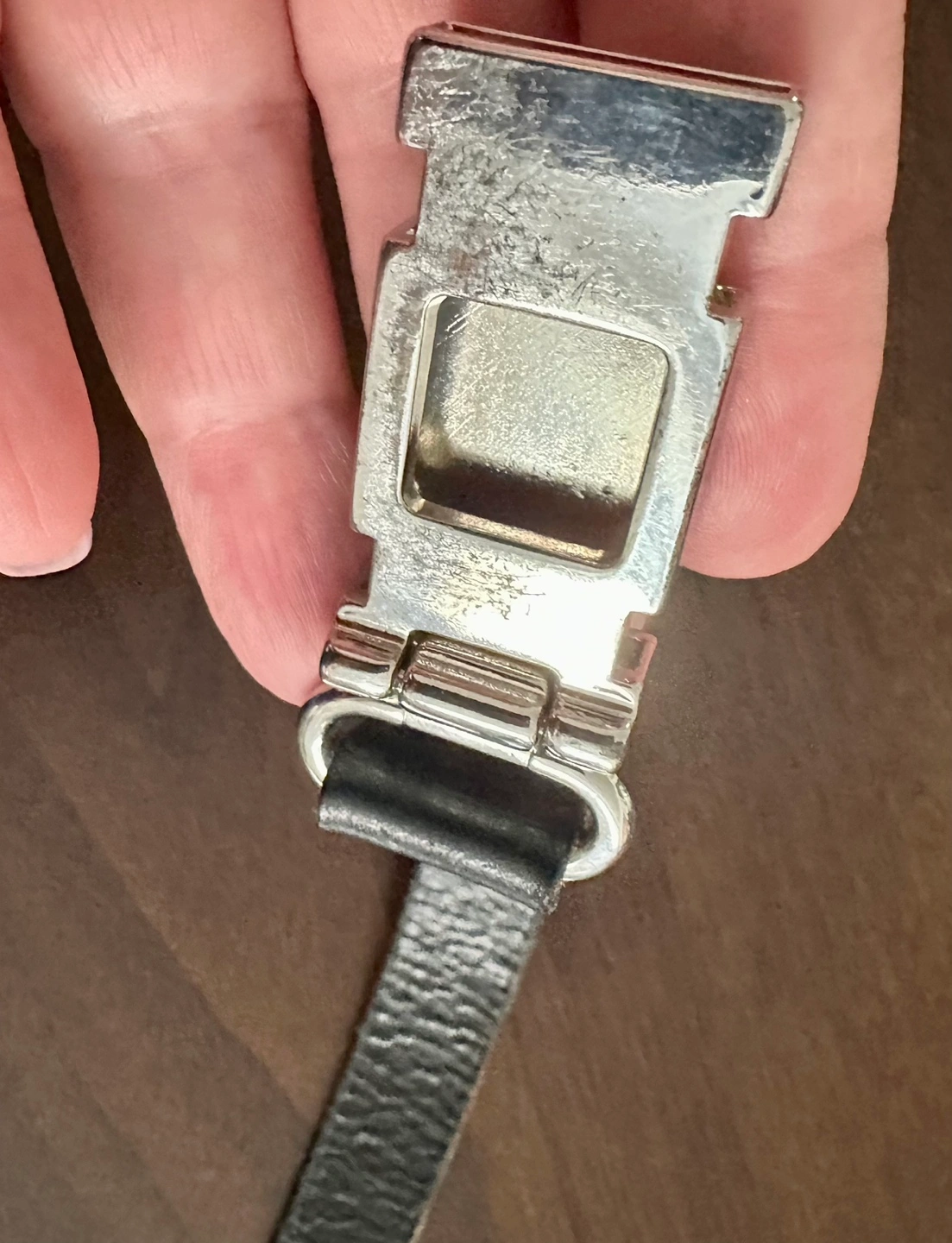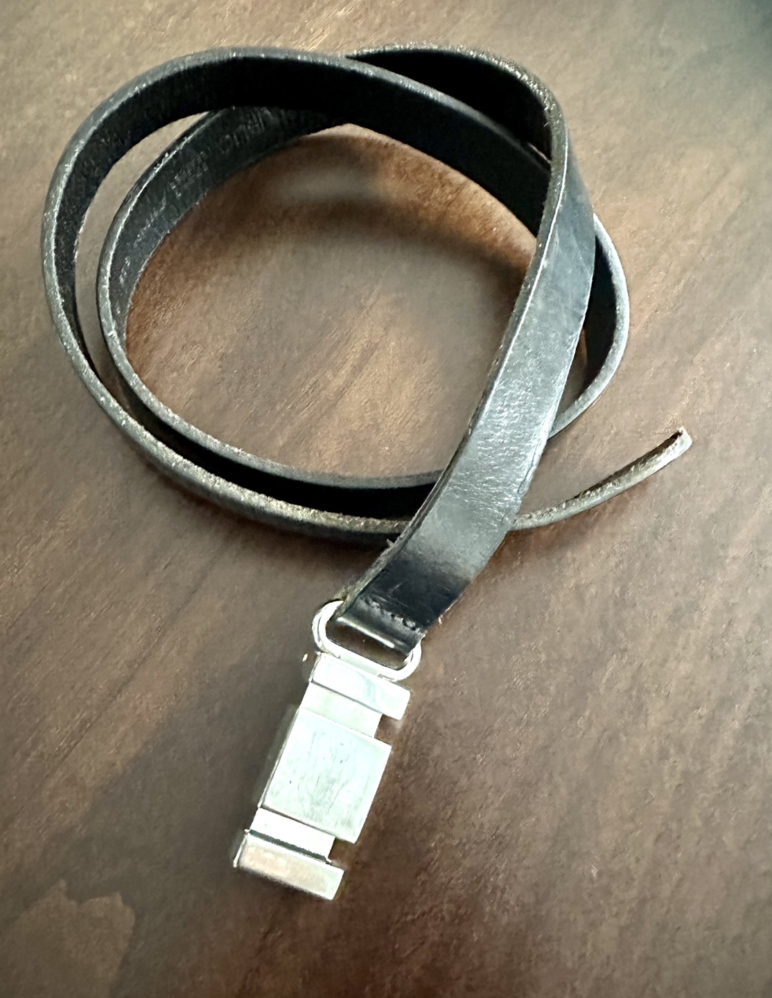 Black skinny belt from BR, black with Crome buckle. Leather is in perfect condition, buckle is a bit scratched from too much love. Made in Italy. 🇮🇹 From ‘Too fat for my closed’ collection.