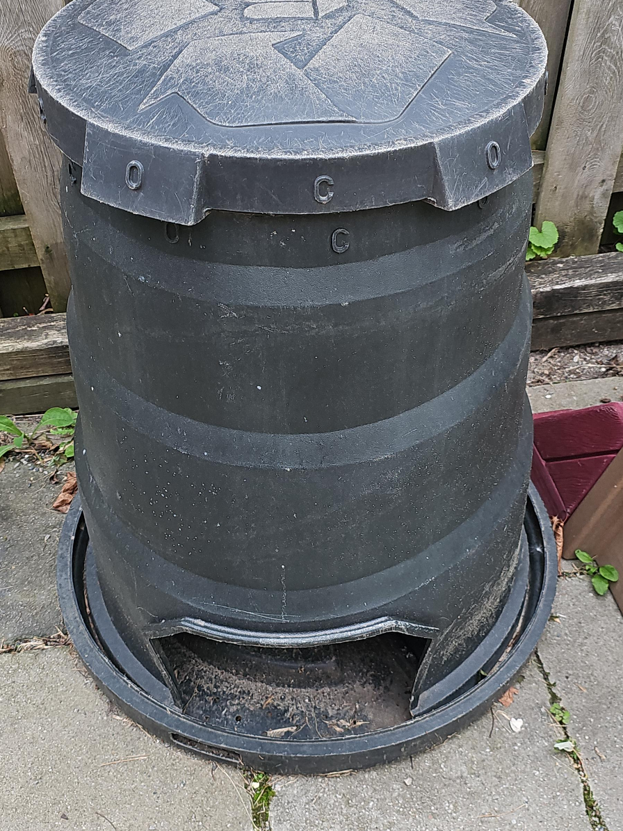 Selling a used black compost bin. It's perfect for your backyard composting needs!
