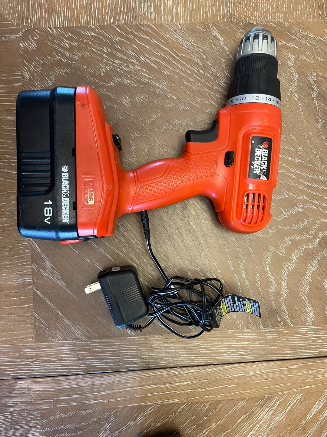Selling a Black & Decker 18V cordless drill. It comes with the battery and charger. Ready to go for your projects!