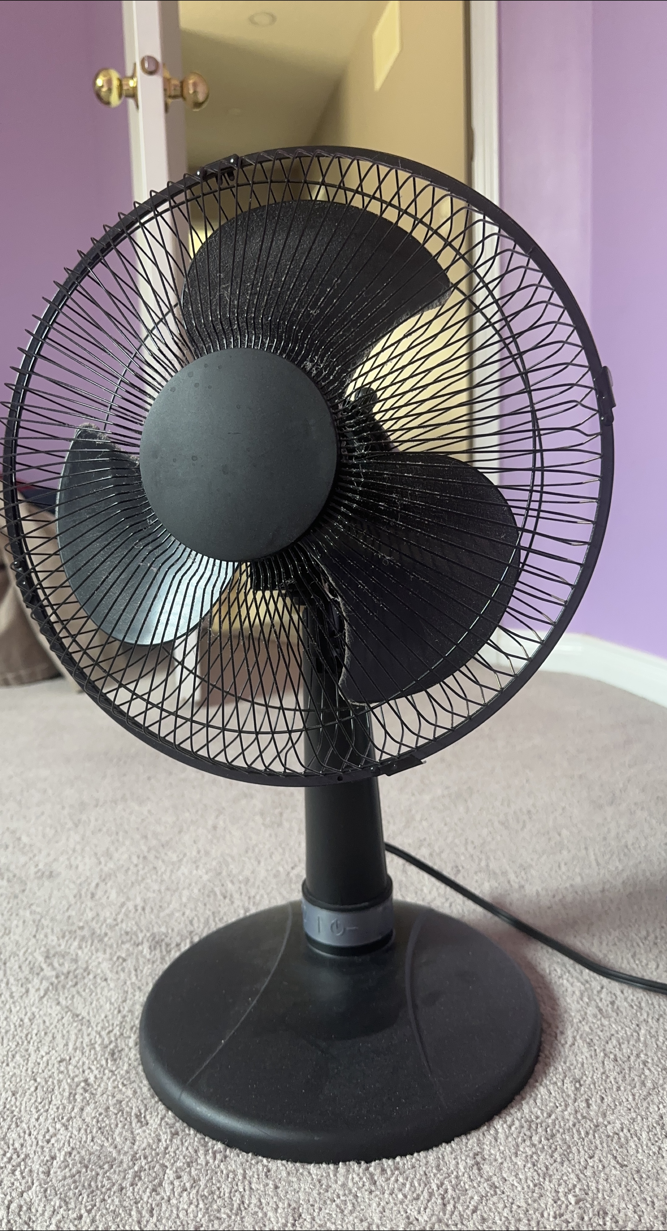 Selling a black desk fan. It's in good condition and perfect for keeping cool on hot days!
