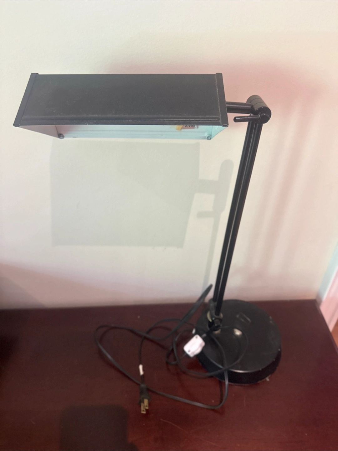 Selling a black desk lamp in good condition. It has an adjustable arm so you can get the light just where you need it. Perfect for a student or anyone working from home