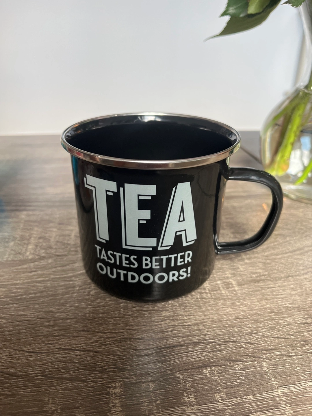 Black Enamel Mug - Tea Tastes Better Outdoors!
