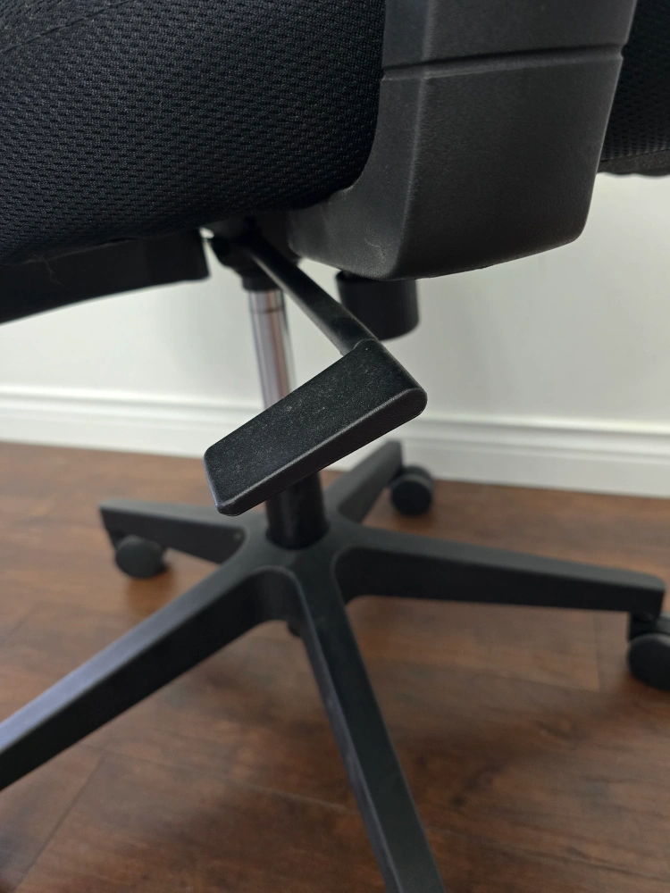 Looking to sell this ergonomic office chair. It's in great condition and ready for a new home office! The chair features a mesh back for breathability and adjustable armrests for comfort. The black colour is neutral and will fit in with any decor