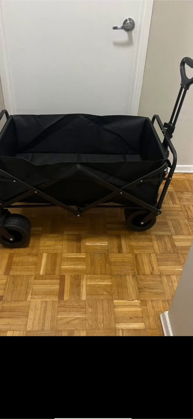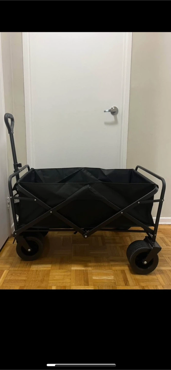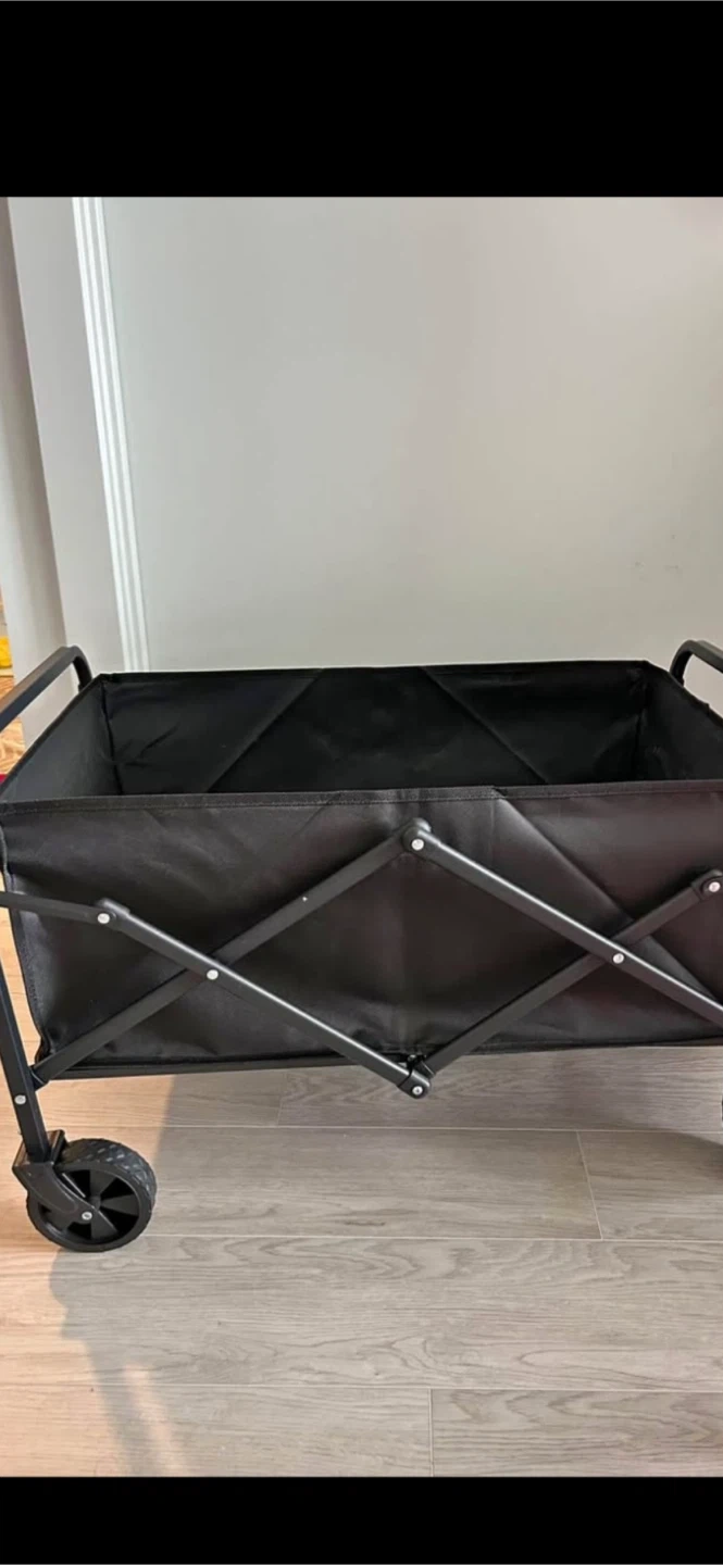Selling a folding wagon in black. It's in great condition and ready for your next adventure or outing! Perfect for carrying groceries, sports equipment, or anything else you need to transport easily