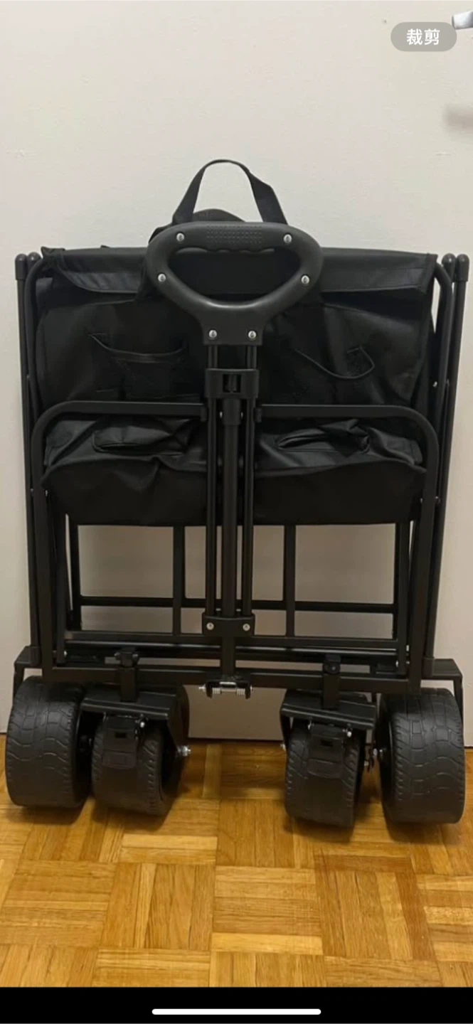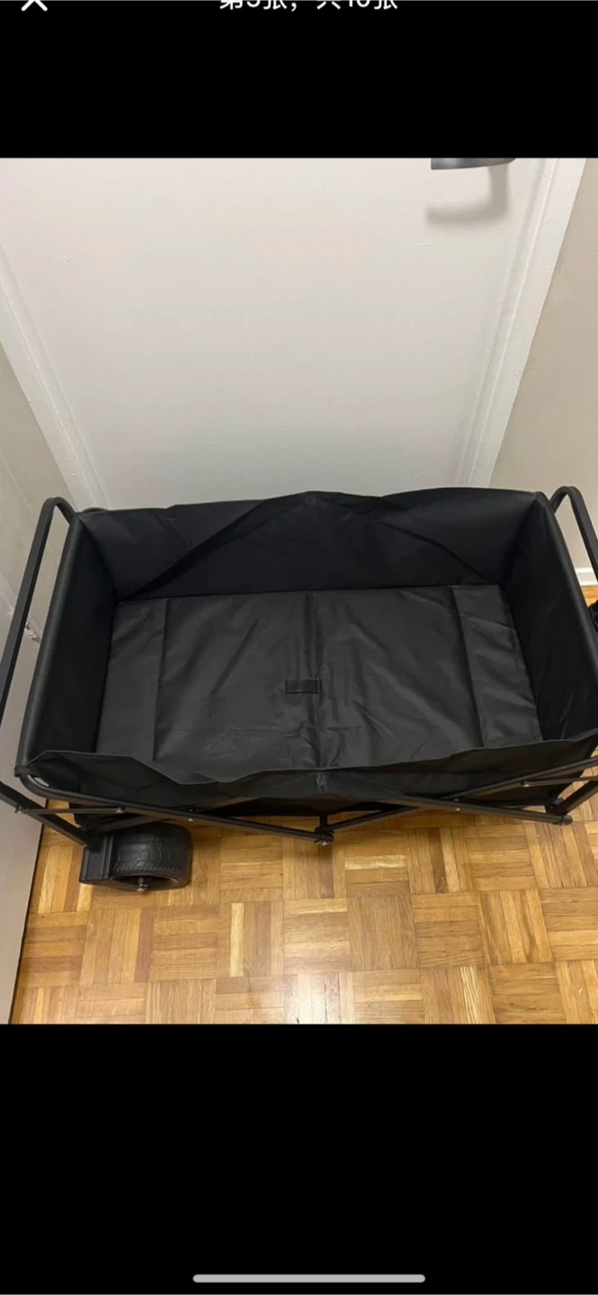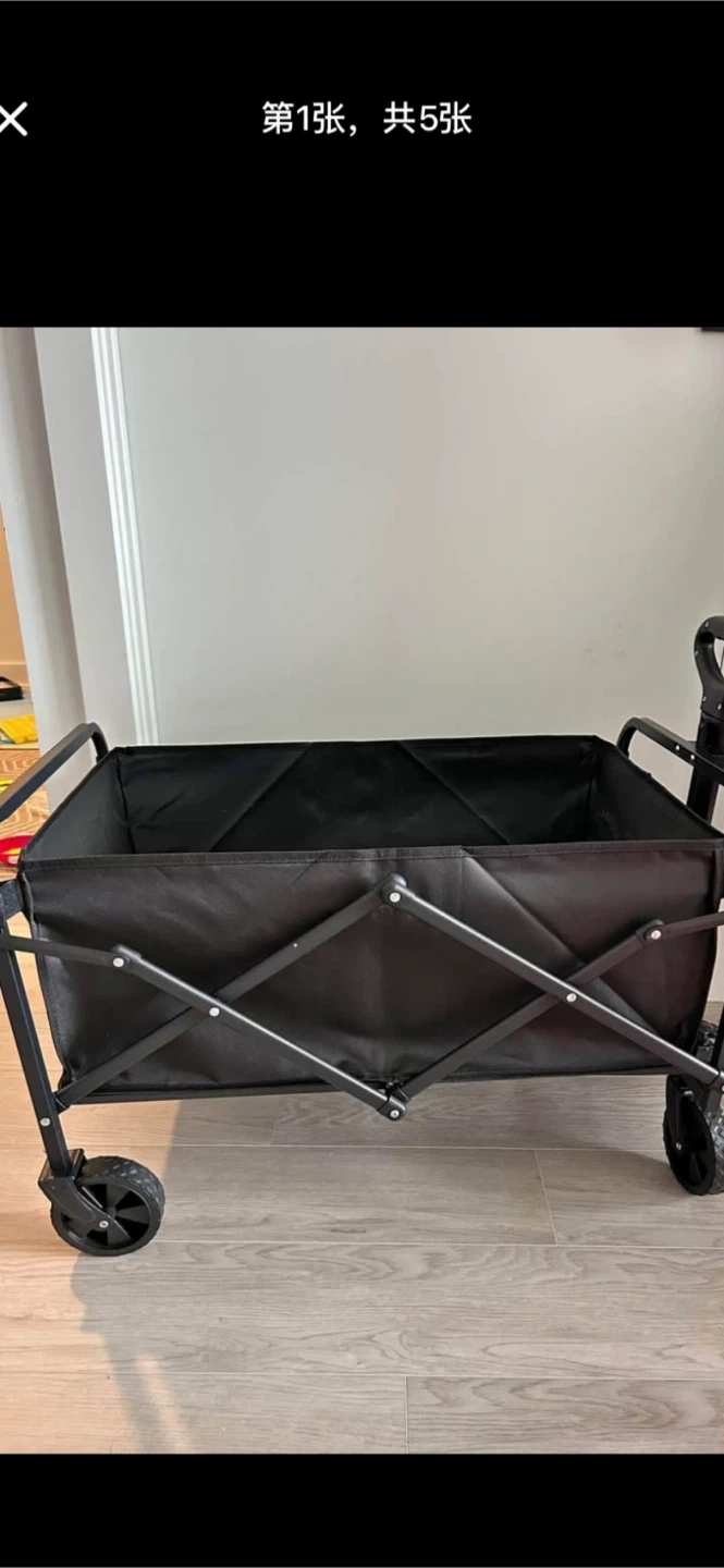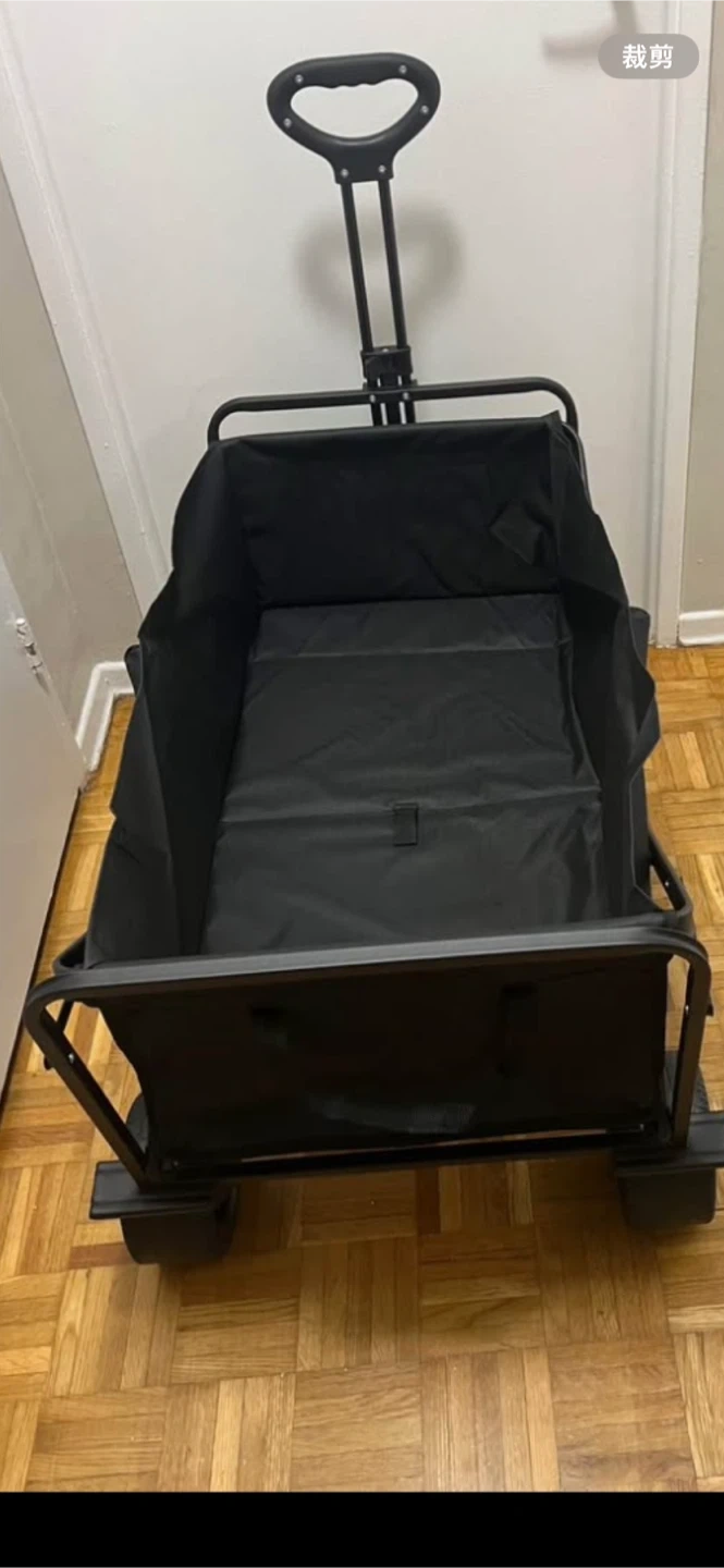 Selling a folding wagon in black. It's in great condition and ready for your next adventure or outing! Perfect for carrying groceries, sports equipment, or anything else you need to transport easily