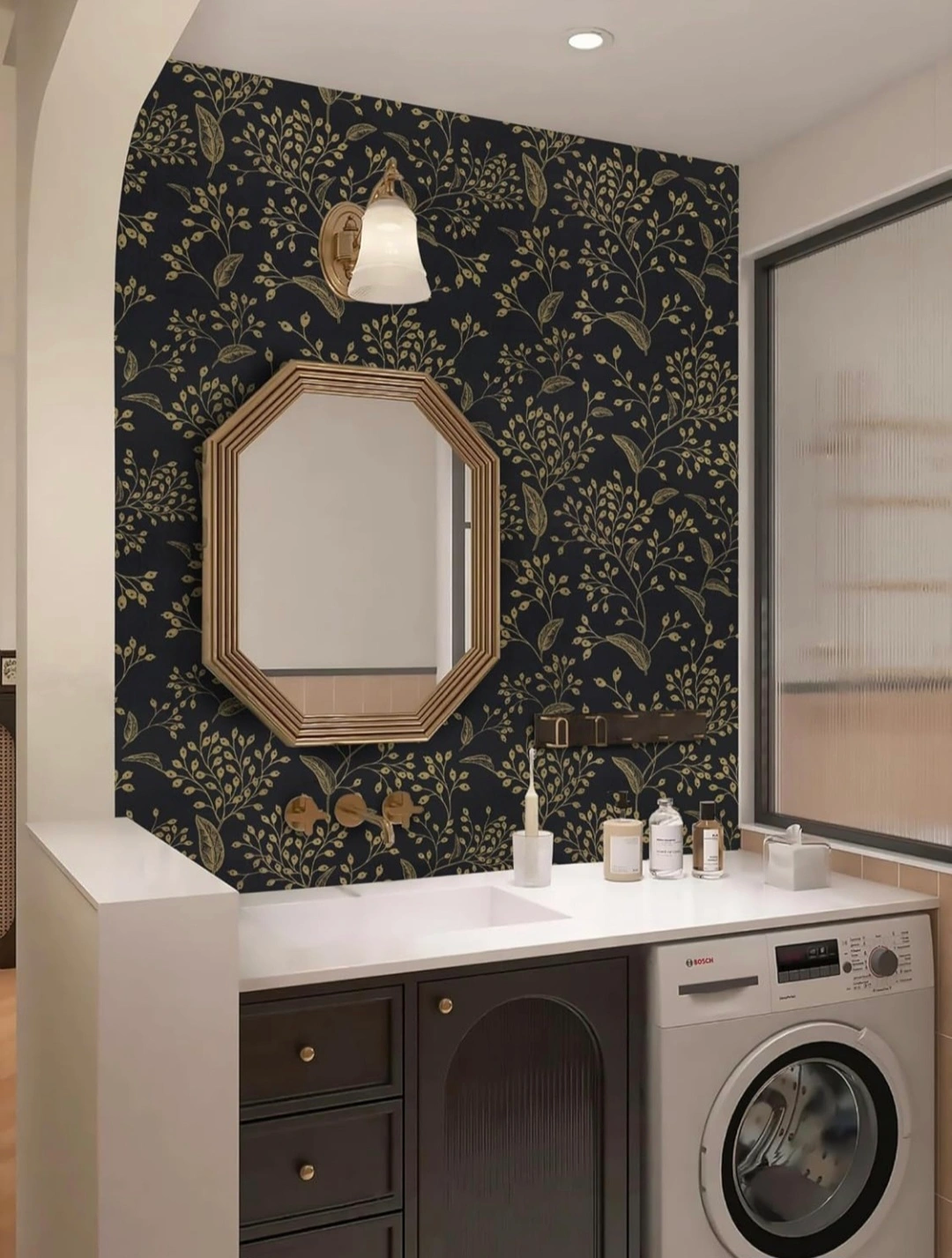 Add a touch of elegance to your space with this black and gold peel and stick wallpaper! It features a soft light texture and is waterproof, making it perfect for various applications. Plus, it's self-adhesive for easy installation.