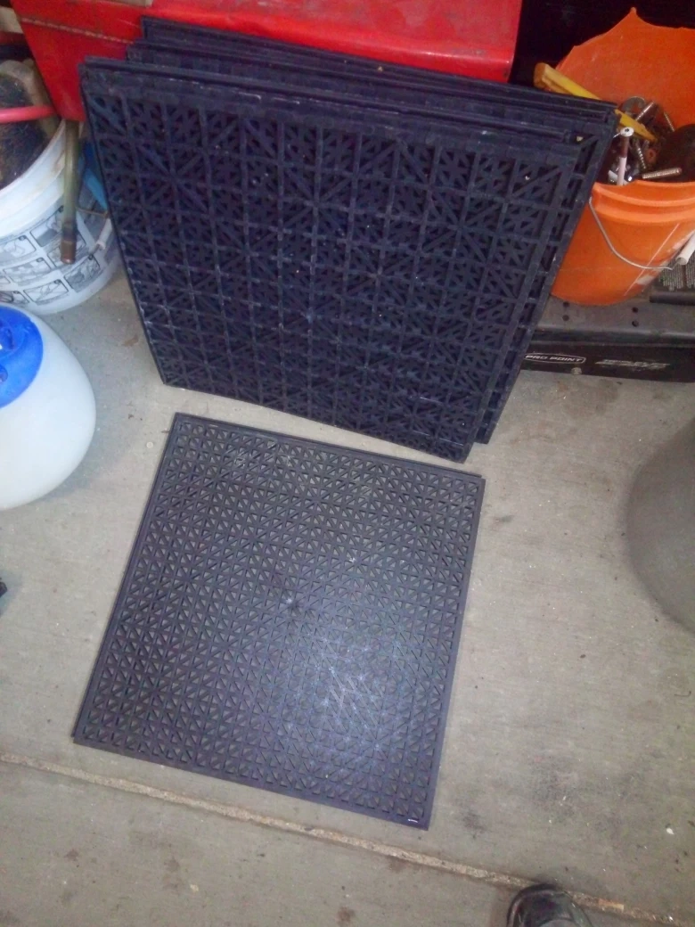 I have a set of black interlocking floor tiles for sale. They're in good condition and perfect for a garage, basement, or workshop. They are easy to install and provide a durable, non-slip surface, take the lot. plz text with app