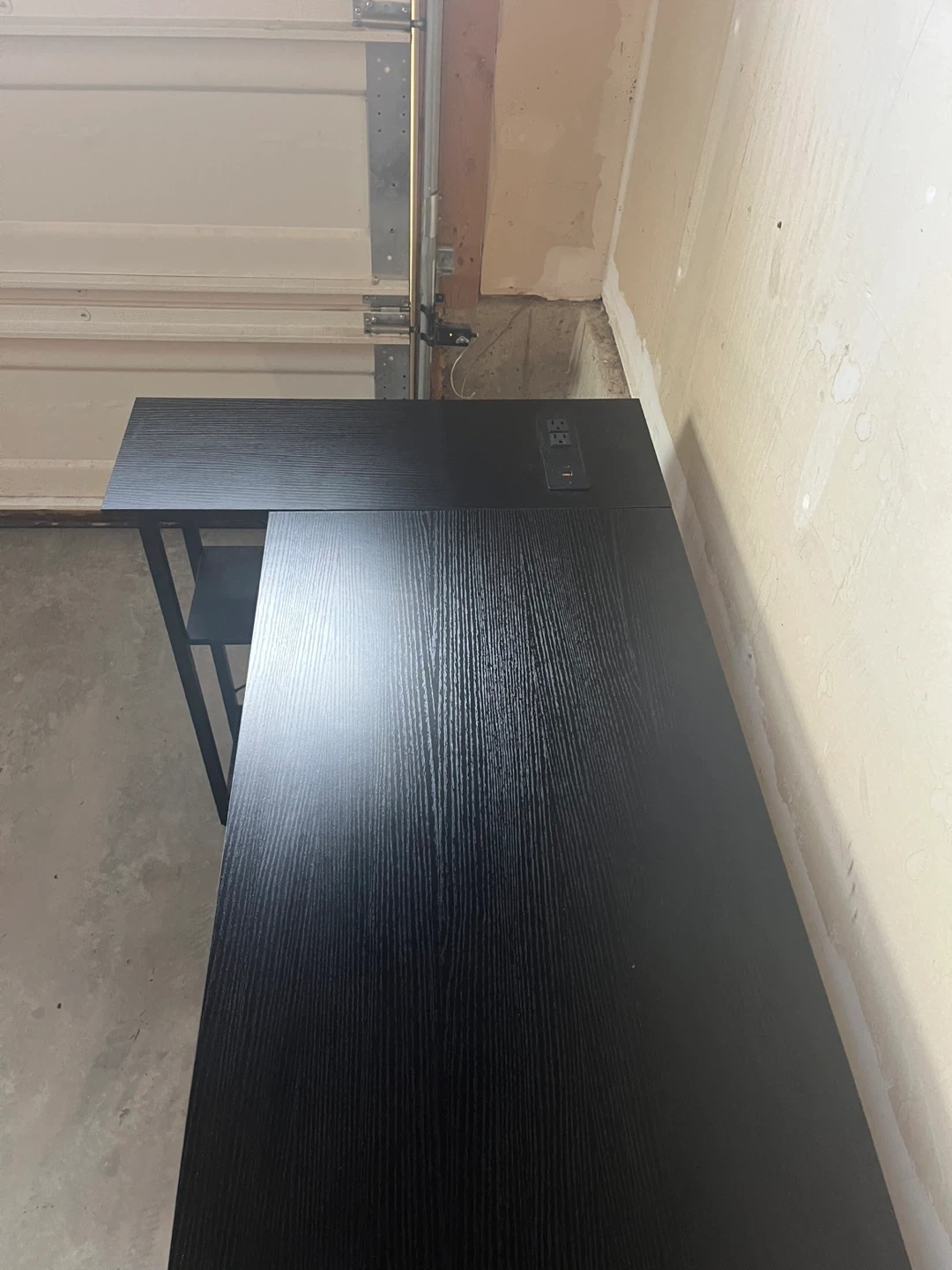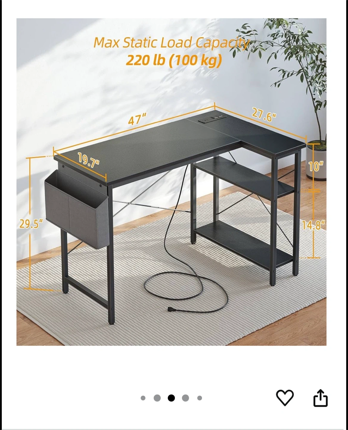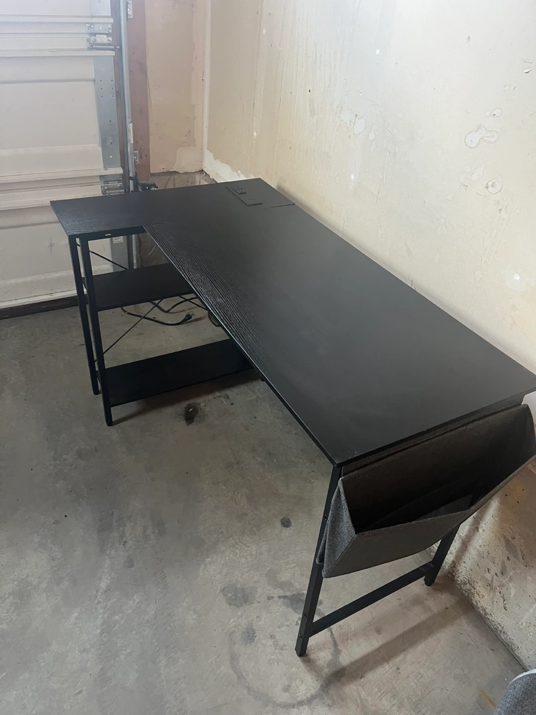 Selling a black L-shaped desk that’s perfect for a home office or study space! It is in like-new condition and features built-in shelves for storage and a convenient outlet for charging your devices. The desk also includes a fabric magazine holder on one side. The dimensions are in the last photo. Originally purchased for $110. Pick up in Airdrie.