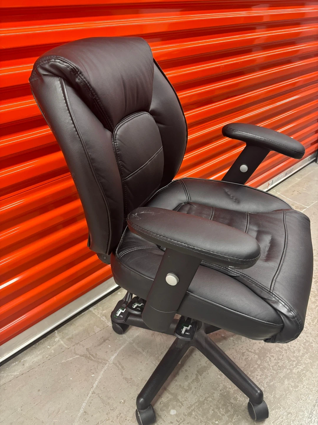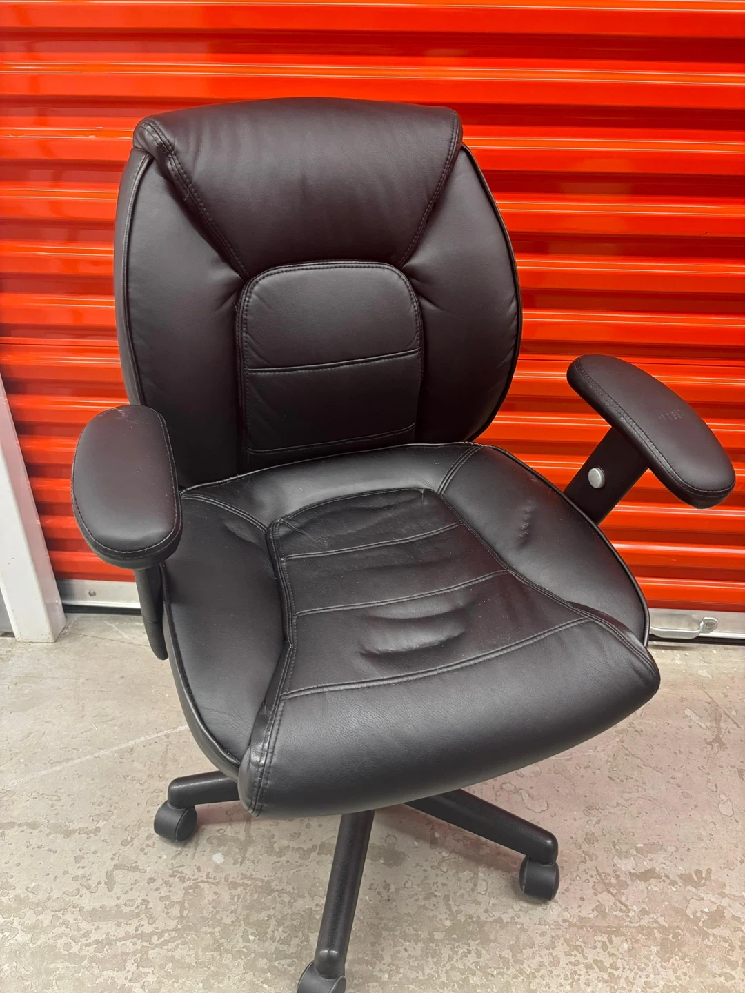 Selling a comfortable black leather executive office chair! It's in good condition and ready to provide great support for your home or office. The chair features adjustable height and armrests, ensuring a customized fit. The leather is soft and durable, making it a practical and stylish addition to any workspace