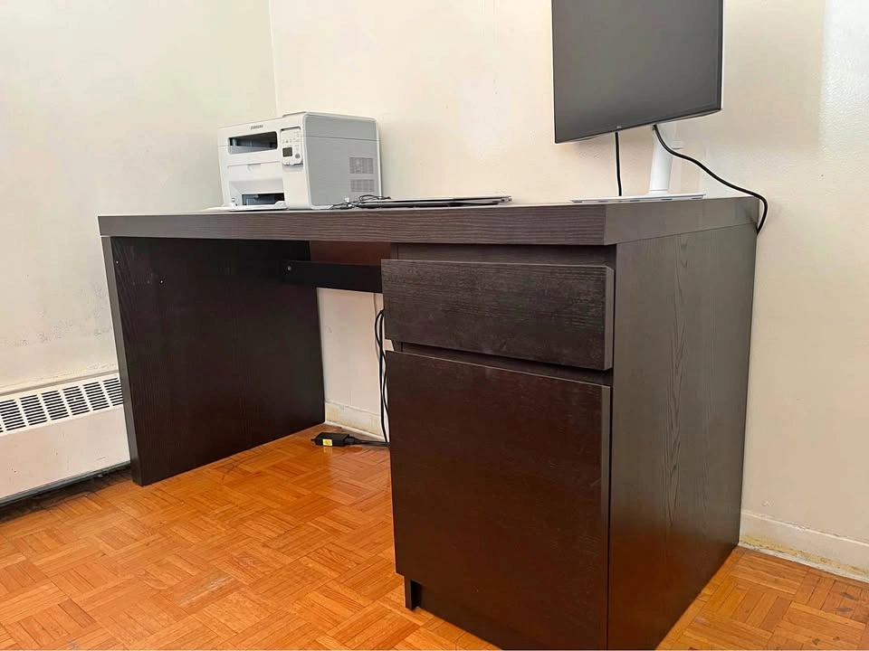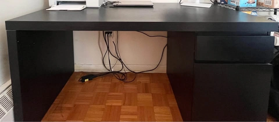 Black MALM IKEA Desk for sale! It’s in excellent condition and was only used for 5 months. Measurements: Max. load: 50 kg (110 lb) Maximum load/drawer: 1 kg (2 lb) Max load/shelf: 14 kg (31 lb) Width: 140 cm (55 1/8 ") Depth: 65 cm (25 5/8 ") Height: 73 cm (28 3/4 ") Height under furniture: 68 cm (26 3/4 ") Drawer width (inside): 32 cm (12 5/8 ") Drawer depth (inside): 39 cm (15 3/8 ") * Items on top and inside of the desk are not included! Pickup and cash only