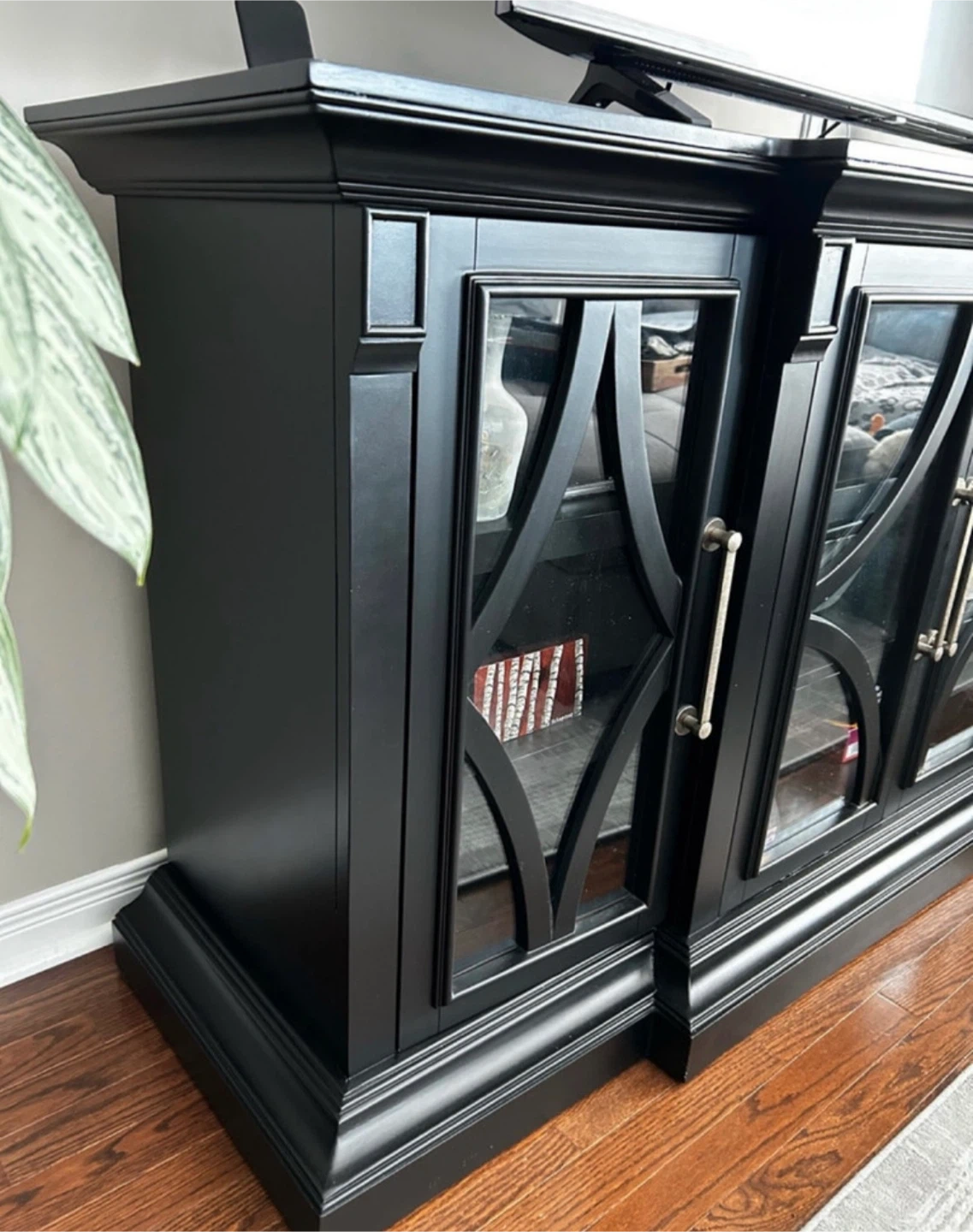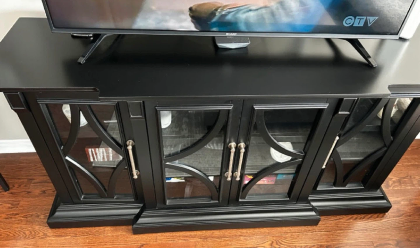Selling a lovely black media console! It's approximately 66 inches wide and in great shape. No damage or scratches. Can be used as a sideboard or perfect for your TV and media storage needs