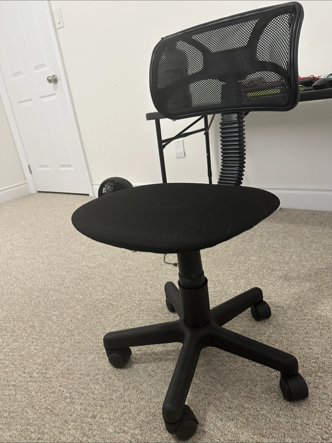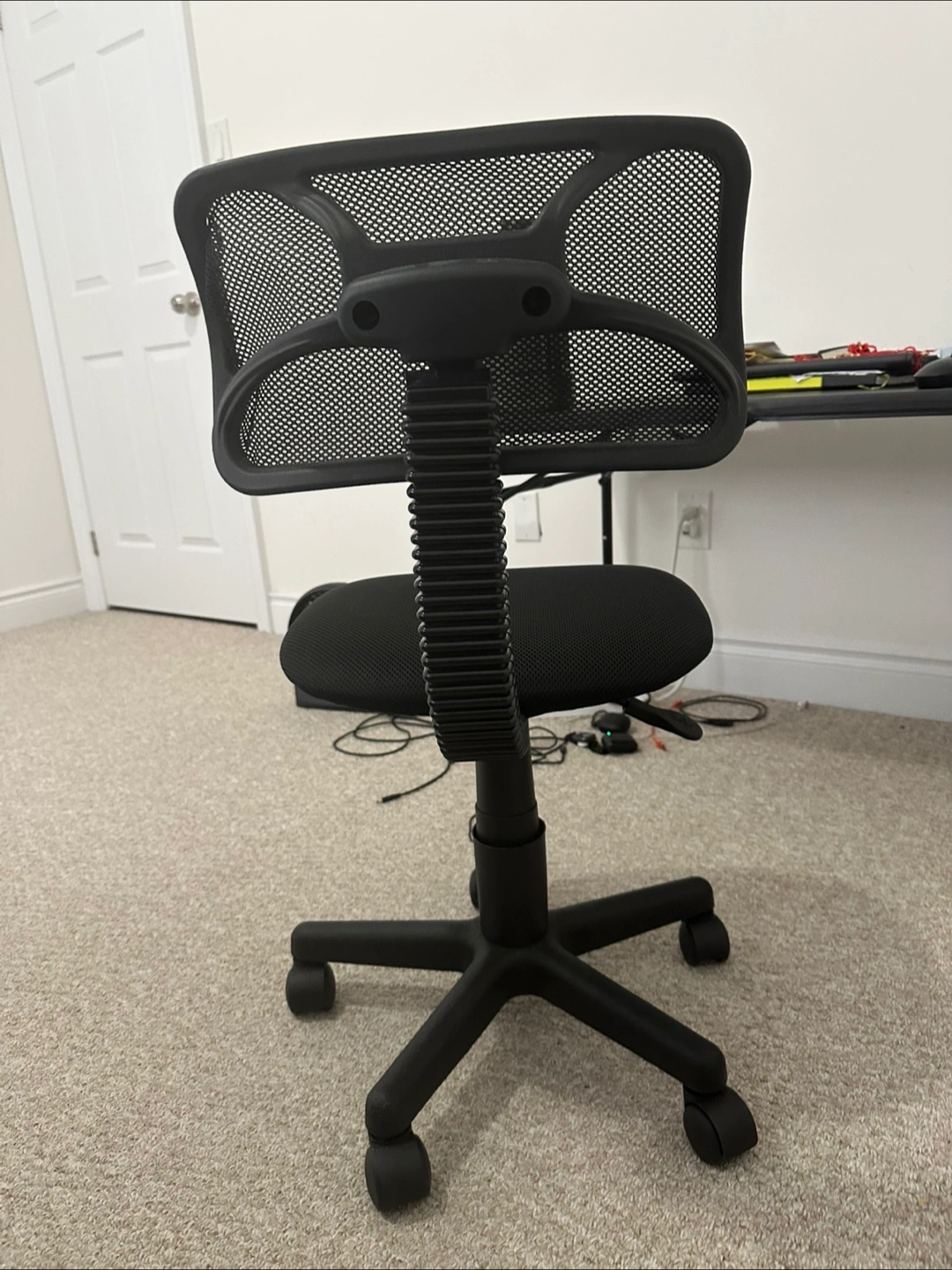 Looking to sell a black mesh office chair. It's in great shape and ready for a new home office or study space. The mesh back provides good support and breathability, perfect for long hours of work or gaming. It's a simple, functional design that fits well in any room