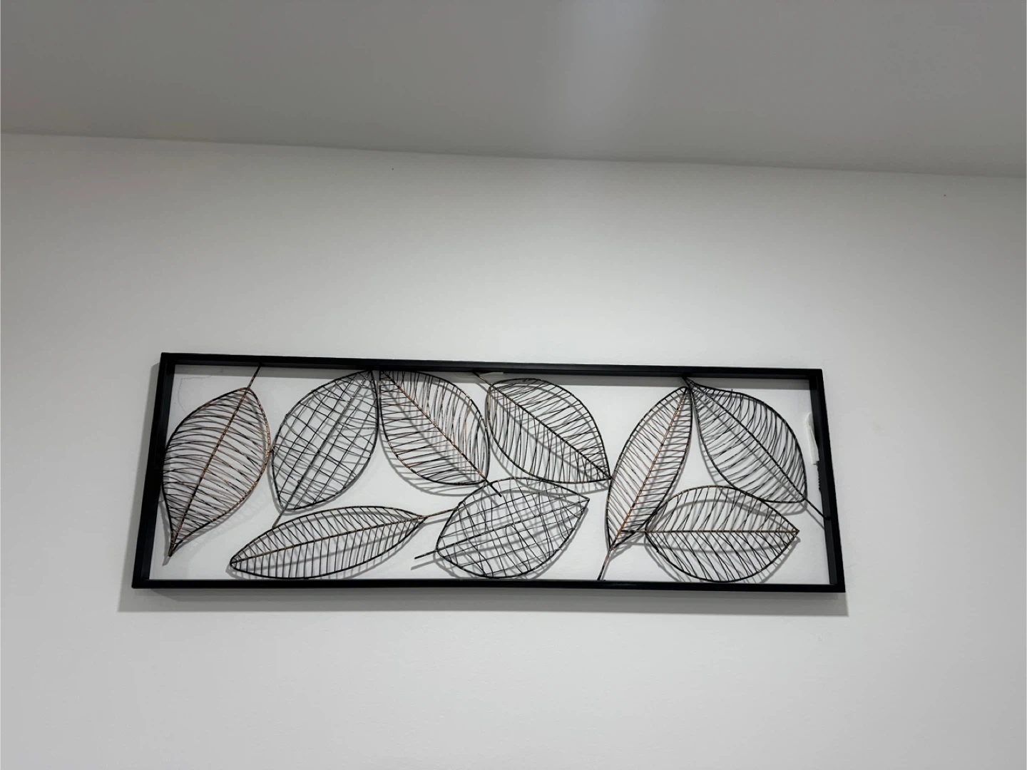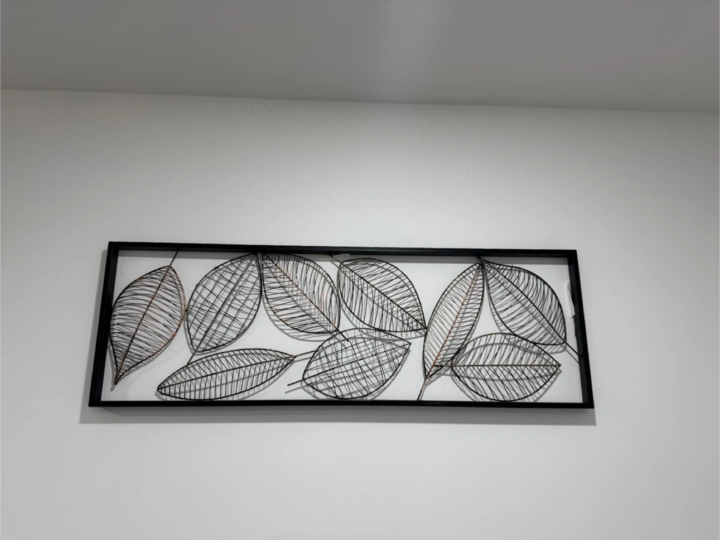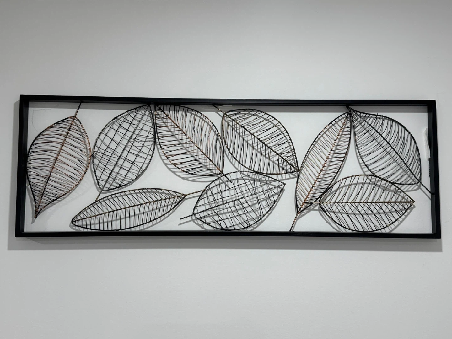 Here's a lovely piece of metal wall art featuring a leaf design! It's in great condition and would look great in any room of the house