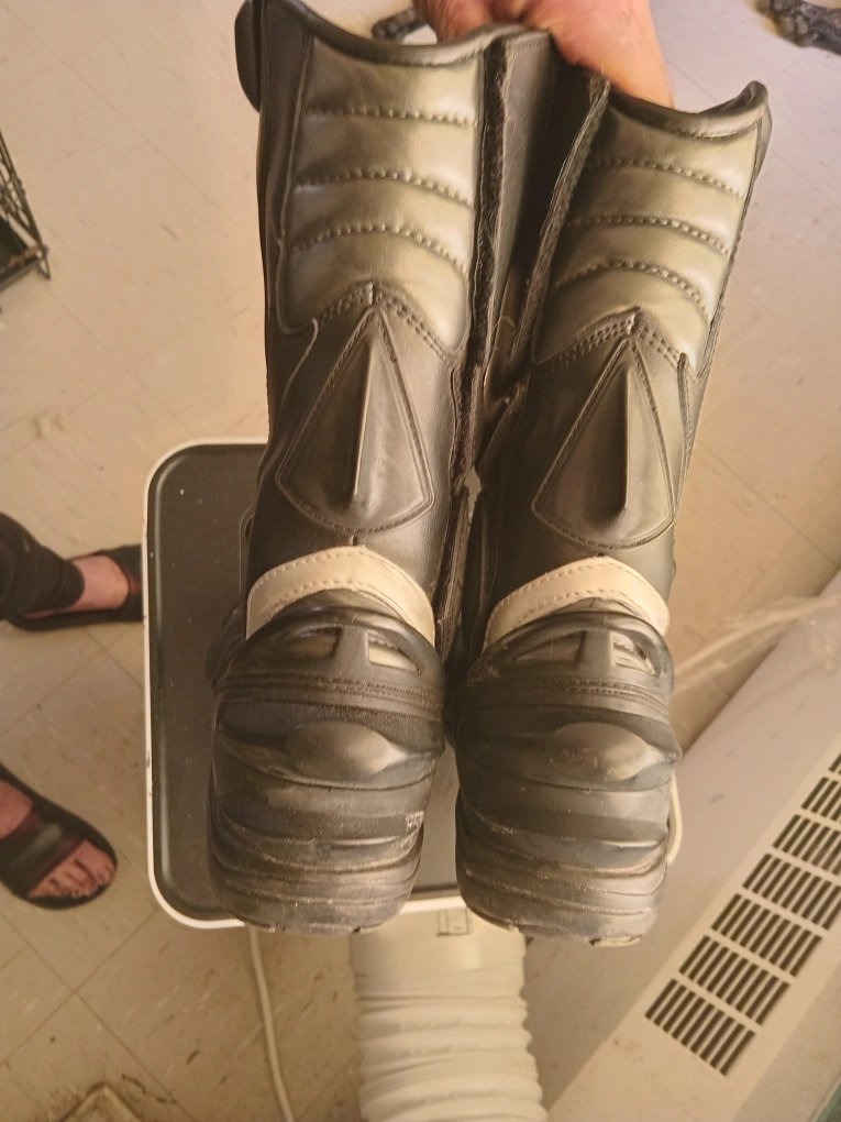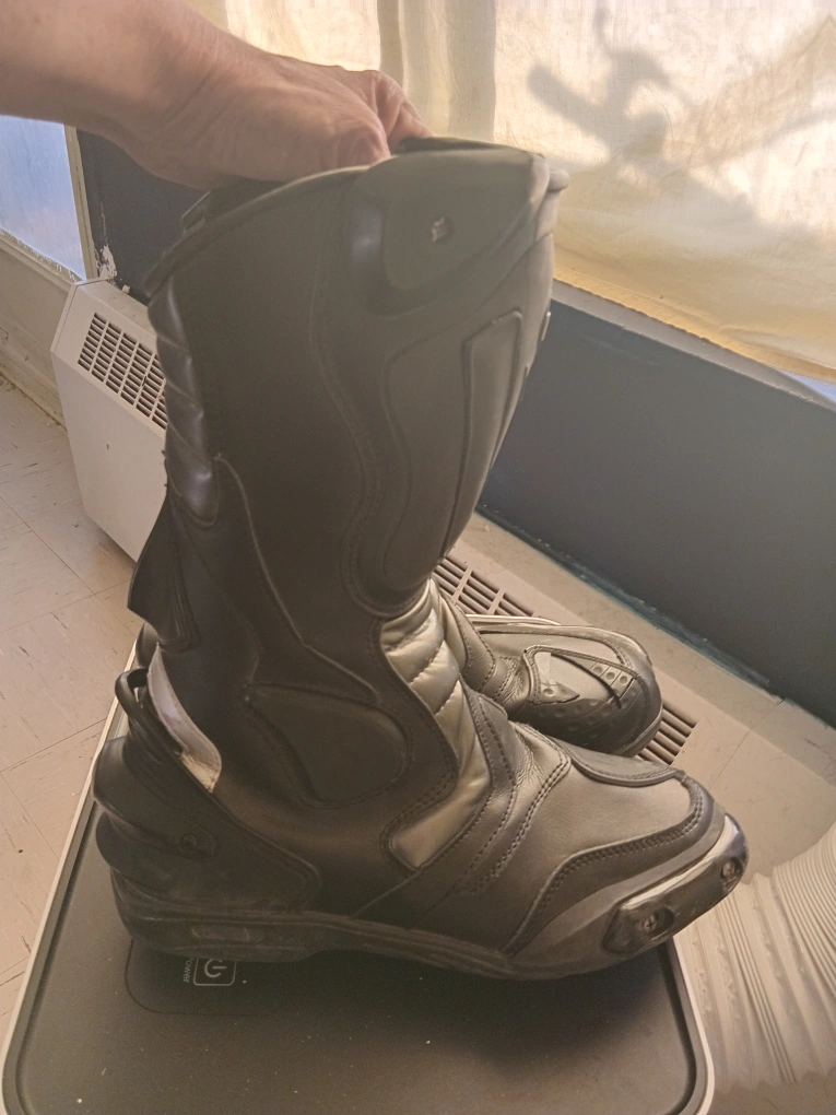 Selling a pair of motorcycle riding boots. They're black and appear to be in good condition, perfect for hitting the open road! They have a sleek design and look like they offer great protection. Please take a look at the pictures to see the condition for yourself. asking 60 dollars but open to offers . they are size 40