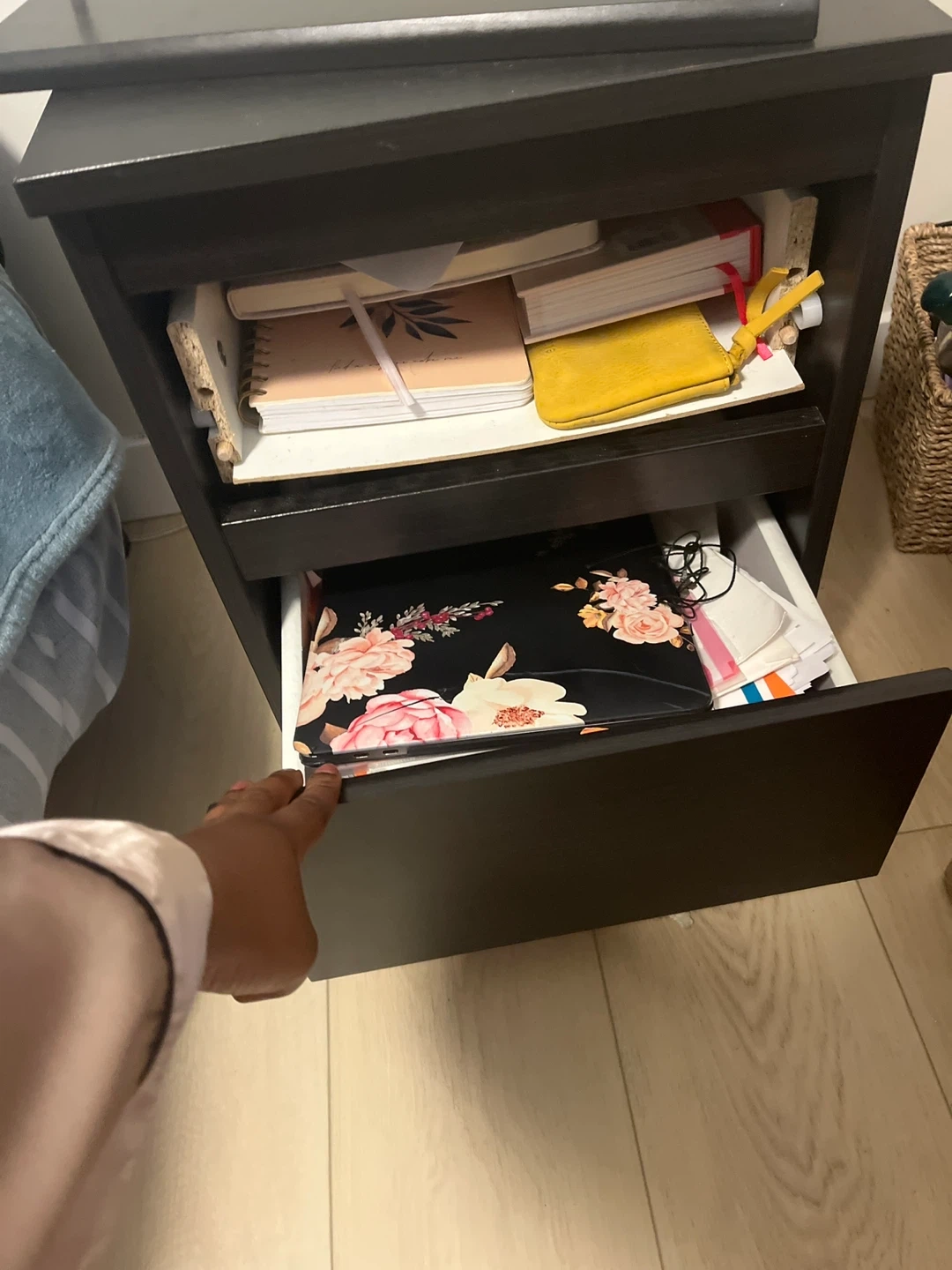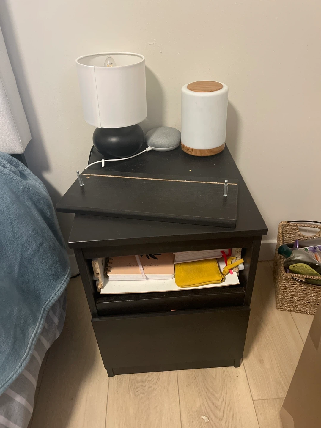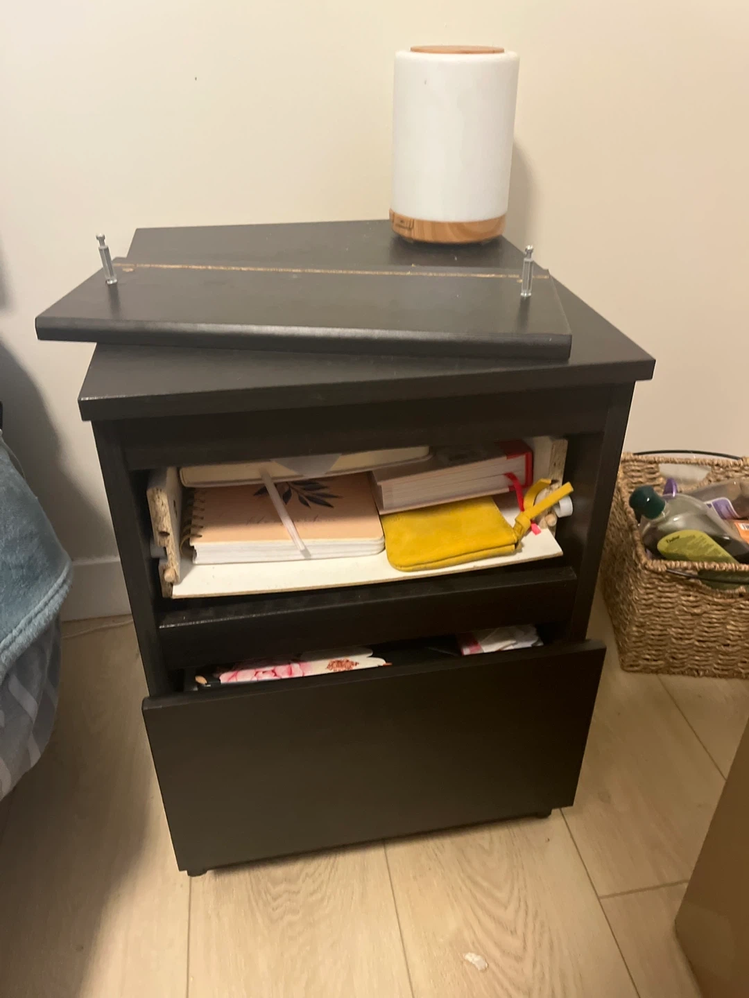 Selling a black nightstand with a drawer. It needs a little TLC and perfect for beside a bed or as a small side table in any room. It has a clean and simple design, and the drawer provides extra storage