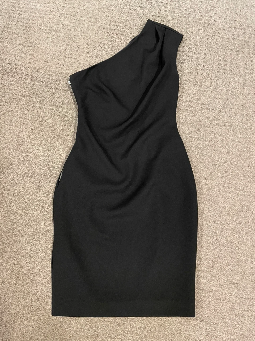 Selling a stylish black one-shoulder dress. It's in great condition and perfect for a night out or special occasion. The dress features a sleek design and a flattering fit. Feel free to reach out if you're interested!
