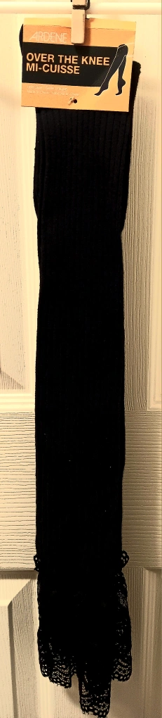 These are a pair of new with tags Ardenes black over-the-knee socks featuring a delicate lace trim, perfect for adding a touch of elegance to any outfit. They are made from 85% polyester, 10% nylon, and 5% spandex, ensuring a comfortable and flexible fit. One size fits all. Here are the specifications: * **Brand**: Ardenes * **Material**: 85% Polyester, 10% Nylon, 5% Spandex * **Size**: One Size * **Colour**: Black * **Style**: Over-the-Knee with Lace Trim These socks are brand new and in excellent condition and ready to wear! If you're reading this, the socks are still available! Don't dilly-dally for too long. Excellent condition. Open to bundling with other items I have listed. Grab a deal before it's gone. I'm Downsizing. From a VF, SF, PF, and BF home. E-transfer is not available at the moment. Pick up Red River Blvd. Delivery charges apply if you like it delivered within city limits. Please see my other ads. Thank you!