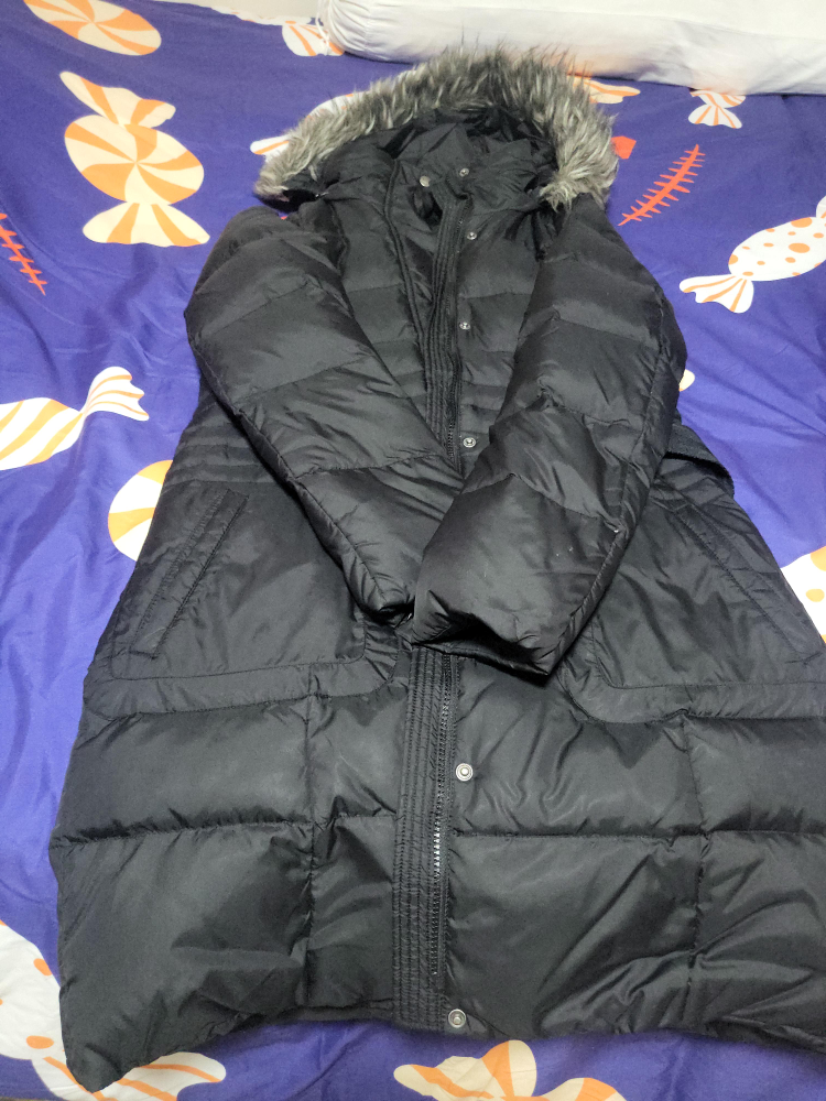 Cozy black puffer coat with a faux fur hood! It's perfect for staying warm during the colder months. It is in great condition!