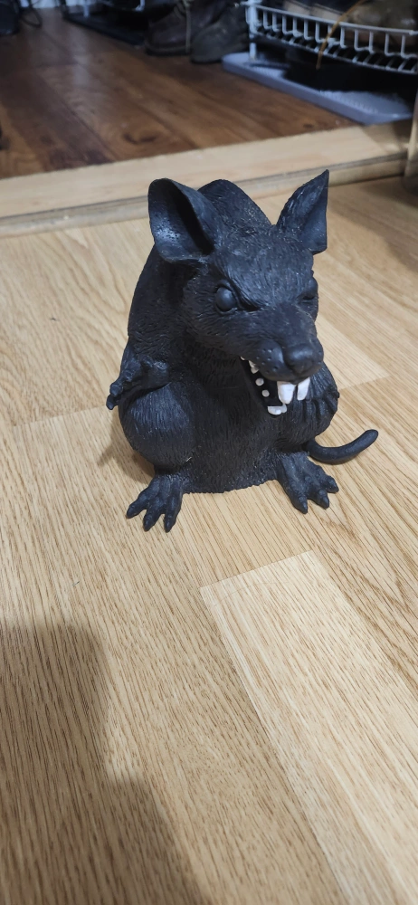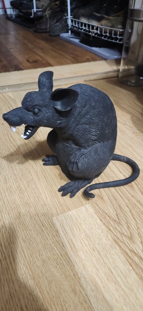 Selling a black rat decoration. It's in good condition and would be perfect for Halloween or just as a quirky piece of decor for your home. price firm only cash only pickup no delivery meet up on 801 O'Connor drive outside East York outside TD Canada Trust bank door