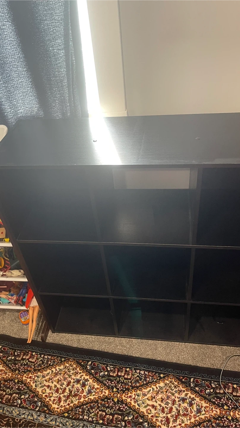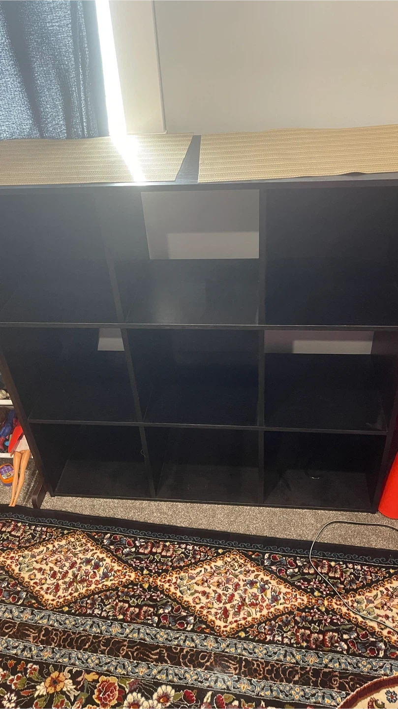 Selling a black shelving unit. It's in great condition and ready for a new home. Perfect for organizing books, toys, or anything else you need to store. It has a simple and clean look that will fit in well with any decor. Pick up Nolan Hill