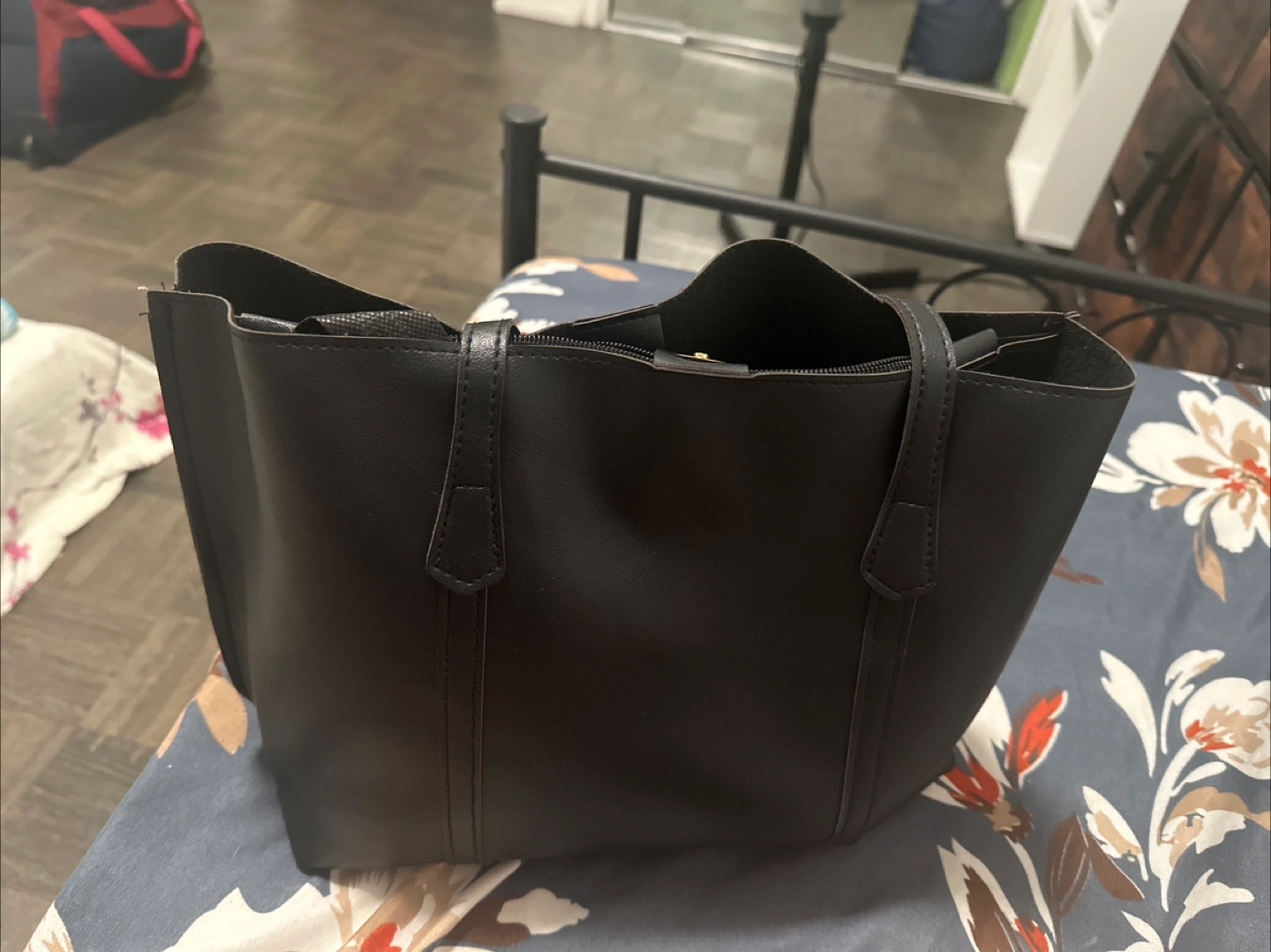 Selling a stylish black tote bag! It's in great condition and perfect for carrying your everyday essentials. The bag features a classic design and is made from durable materials. It's a versatile accessory that can be used for work, school, or casual outings. Feel free to reach out if you're interested!