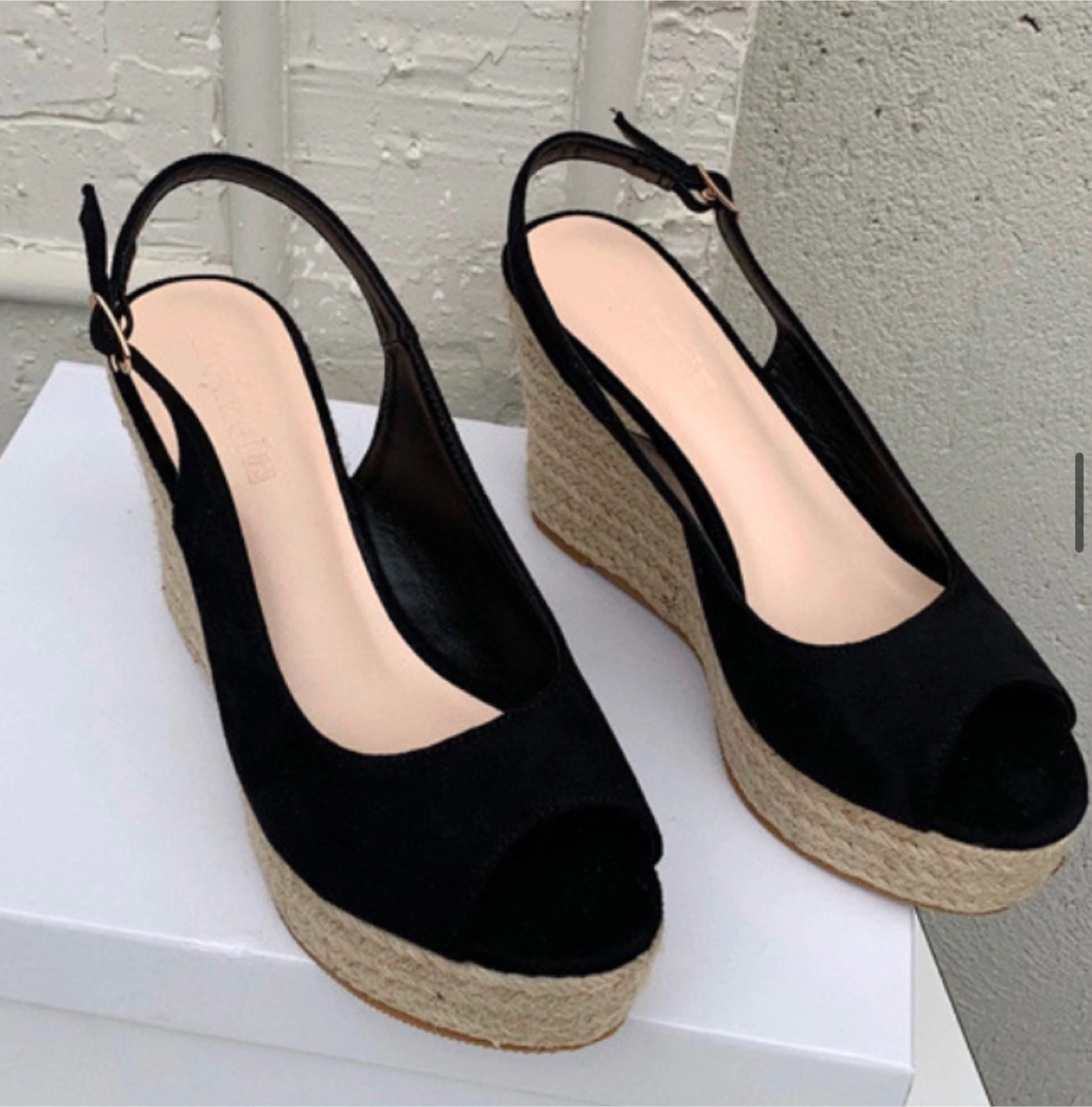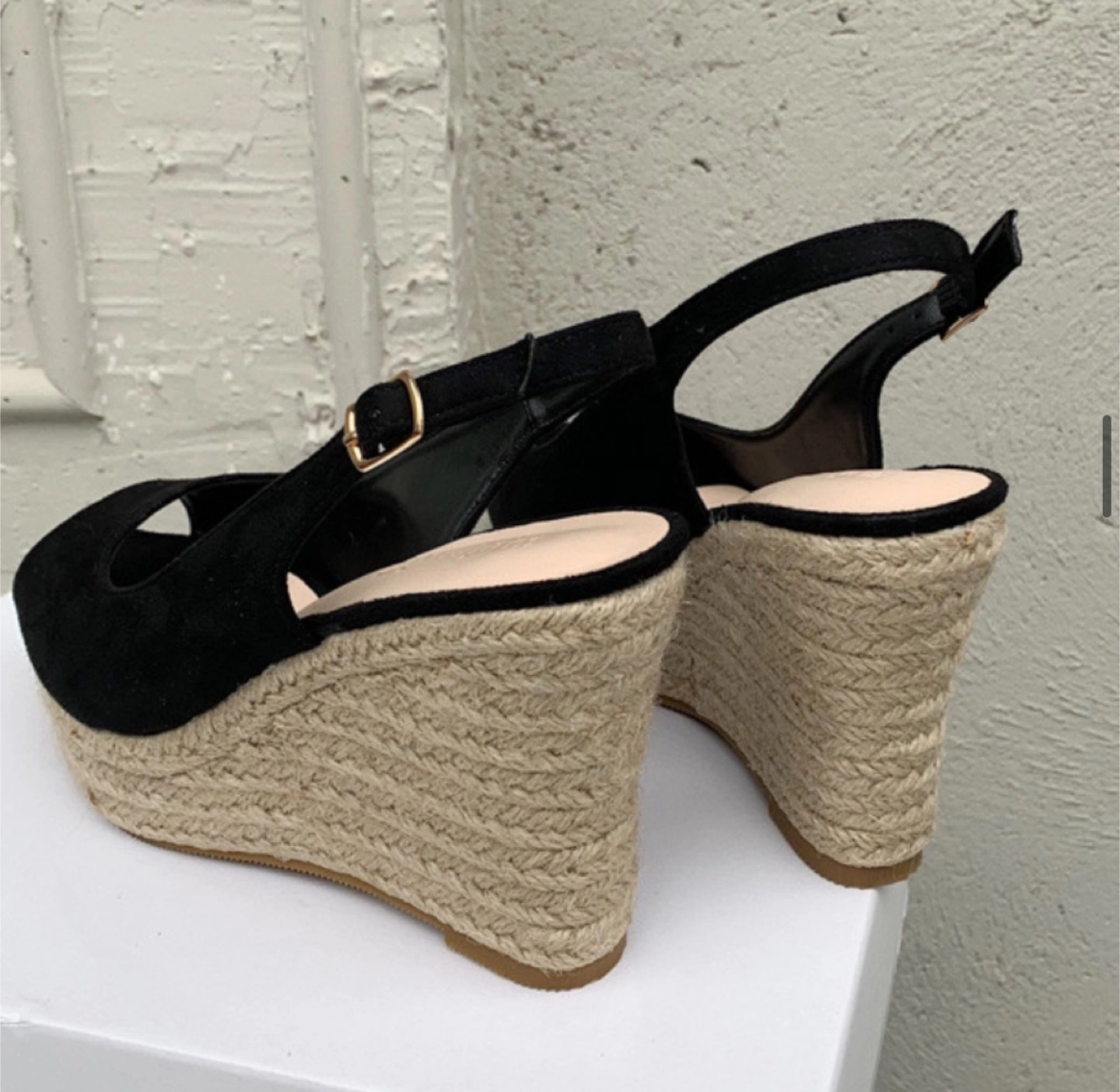 These black wedge slingback heels are super cute and brand new! The wedge is a woven material, giving them a summery vibe. They'd look great dressed up or down!