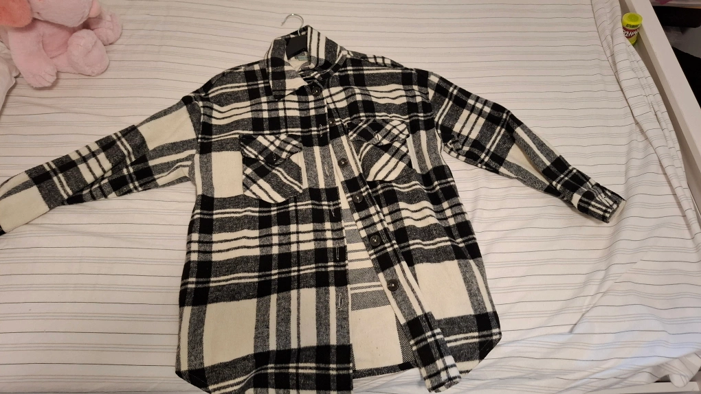 Here's a cozy black and white plaid flannel shirt! It's in great condition and ready to keep you warm on those chilly days. Perfect for layering or wearing on its own