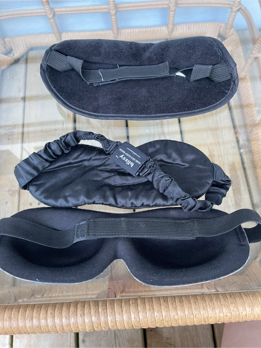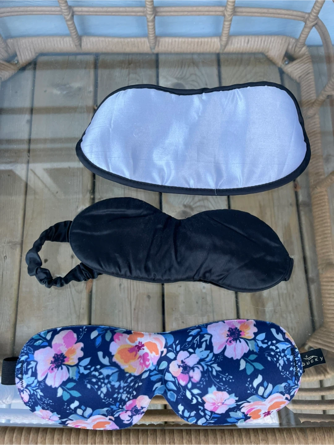 Selling a few sleep masks, including a Blissy pure silk sleep mask and a Ducky sleep mask! They are great for a good night's sleep or blocking out light during travel 1. White - $5 2. Black Blissy - Sold 3. Midnight Floral - $15