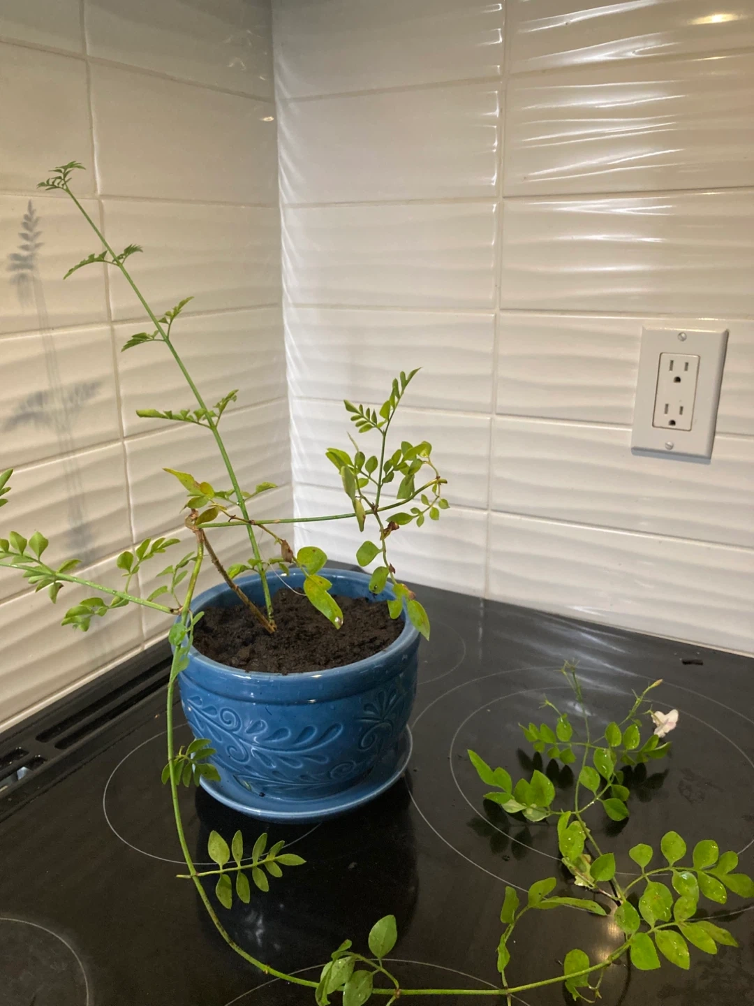 Selling a lovely jasmine plant, currently flowering, in a blue pot with saucer! It's healthy and ready to bring some greenery to your home. The pot has a nice decorative pattern as well. For adoption to a plant loving home. This is a vine-growing plant that can either perch ugh we up to let the vine drape down. Or give it a trellis to climb upward. Please check out my other plant posts as well. 🌿