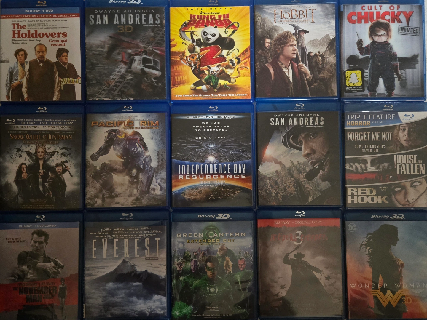 Selling a collection of Blu-ray movies. blurays $5 each dvds$2.50 cash only. make me an offer for the whole collection will update with new pics as i have sold off at least half* *must pick up at eglinton and caledonia area Titles include: Jeepers Creepers 3 Cult Of Chucky San Andreas Snow White & the Huntsman King Kong Pacific Rim Wonder Woman Kung Fu Panda 2 The Hobbit The November Man Independence Day Resurgence Green Lantern Forget Me Not, House of fallen, red hook the holdovers dvds: Lethal Weapon 1-4 predators Critters Attack!