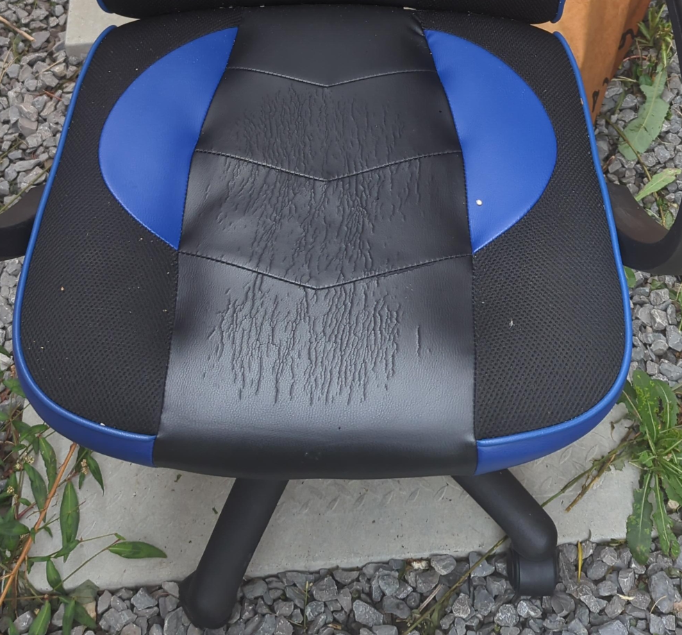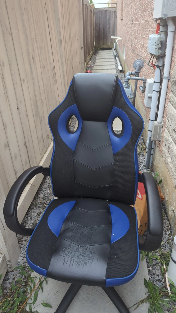 Selling a blue and black gaming chair. It shows some signs of wear on the seat, as pictured. Still functions perfectly!