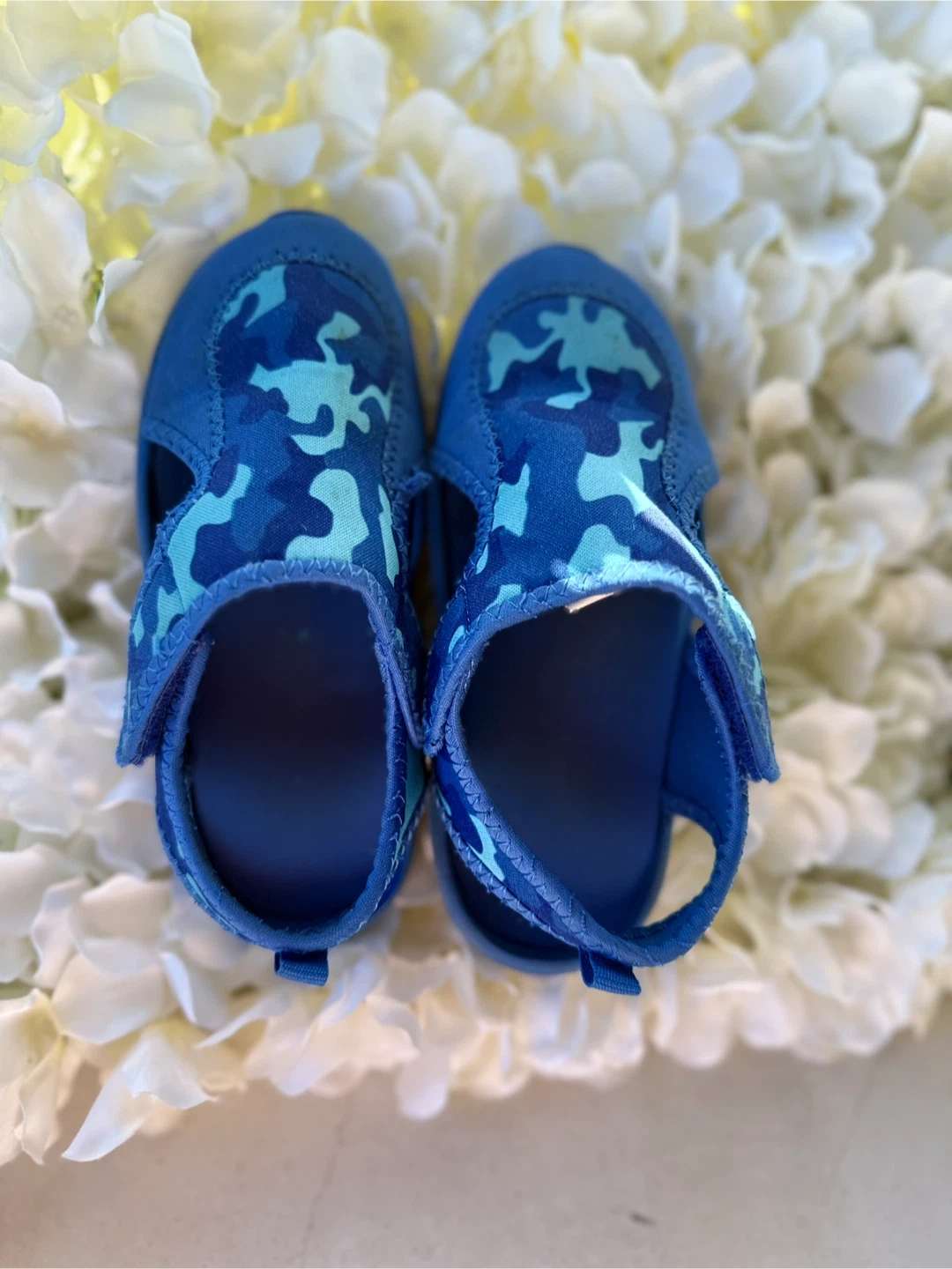These cute blue sandals feature a fun camo pattern! They're perfect for your little one to wear during the warmer months. Great condition and ready for a new home!