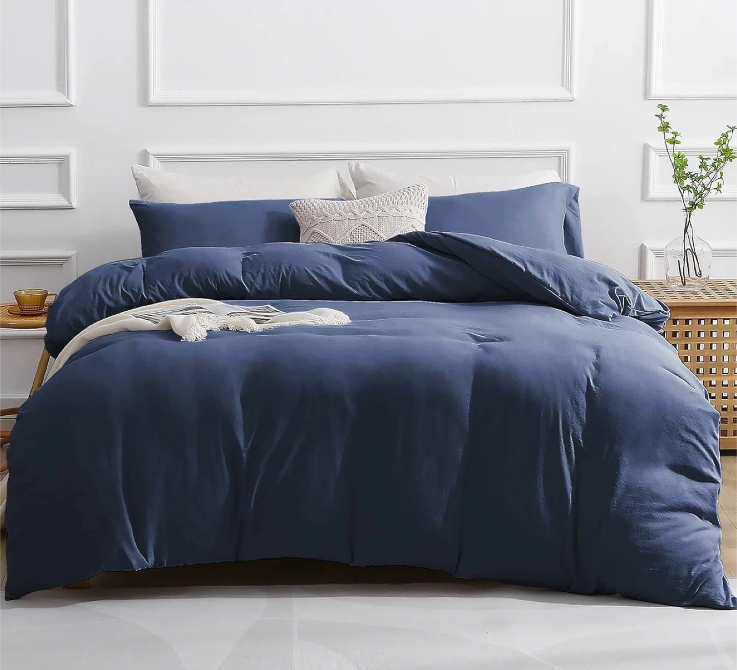 Here's a lovely blue duvet cover set that would look great in any bedroom! It's in excellent condition and ready for a new home. The colour is a beautiful, calming blue. It's super comfy and soft to the touch!