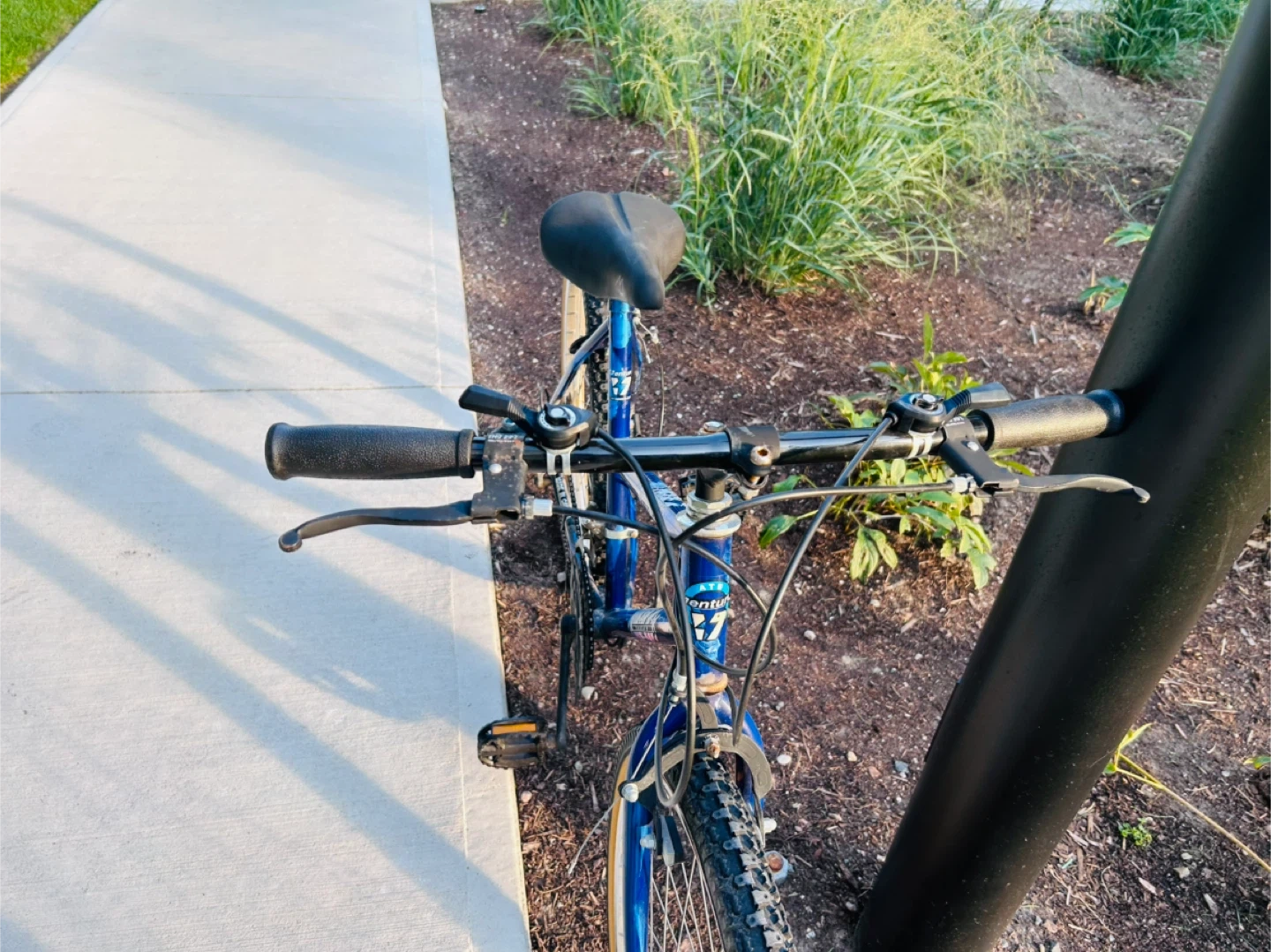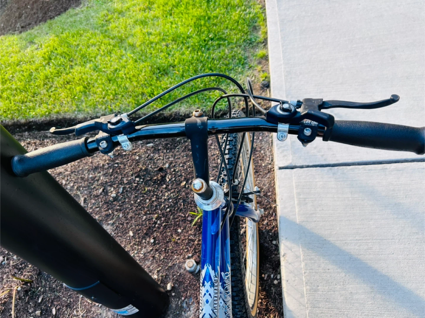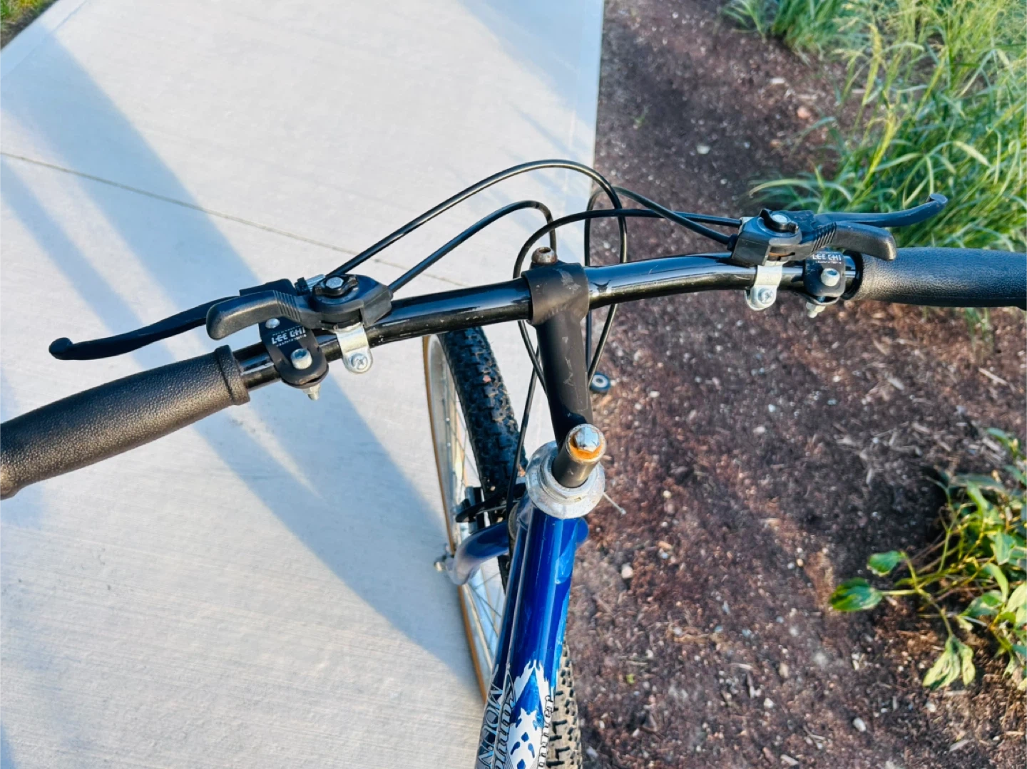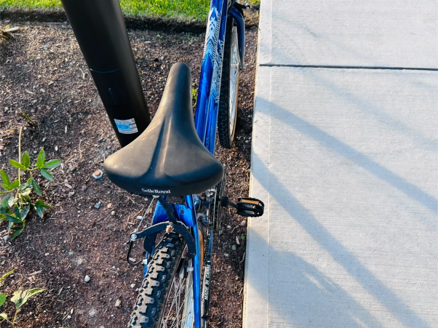 Selling a blue mountain bike! It features a Selle Royal seat for added comfort. Perfect for trails or getting around town