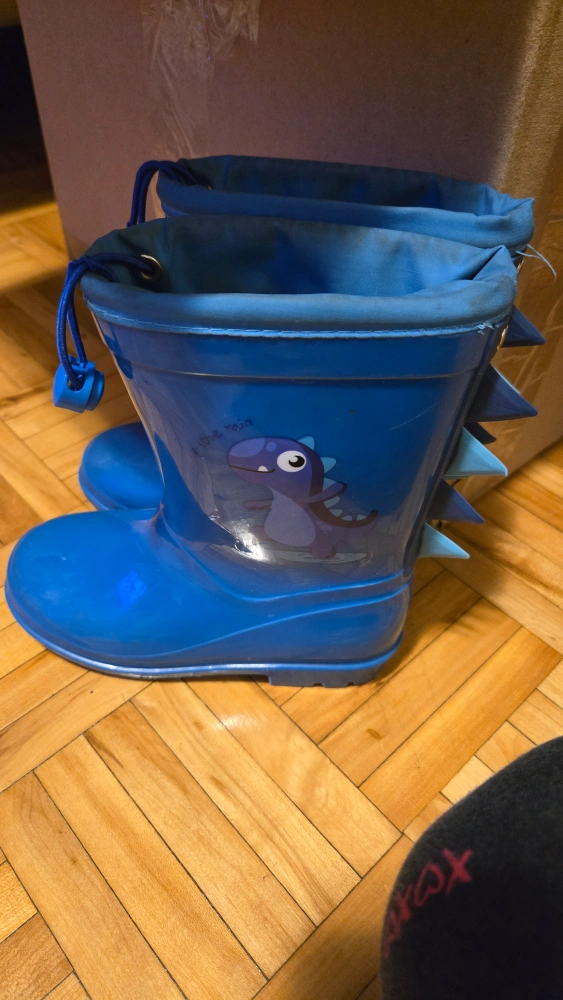 These blue rain boots are perfect for puddle jumping! They feature a cute dinosaur design on the side and a drawstring closure to keep little feet dry. Great for kids to wear in the rain or snow