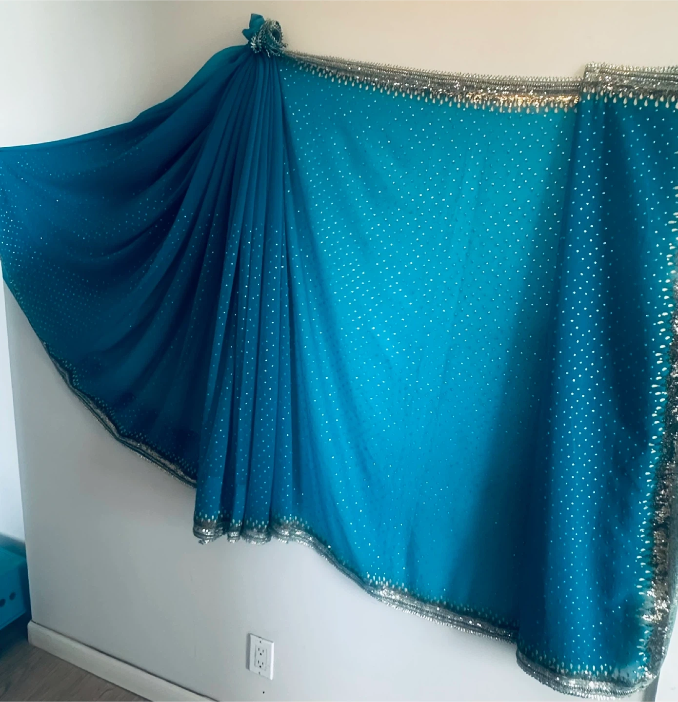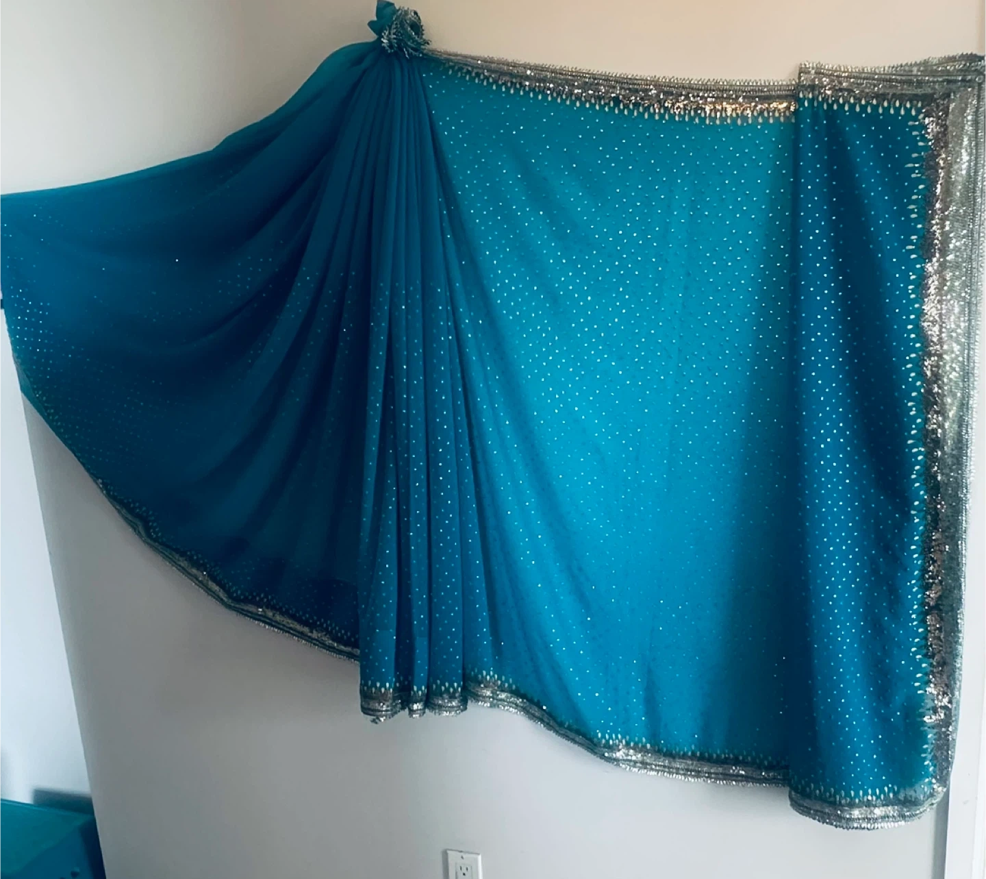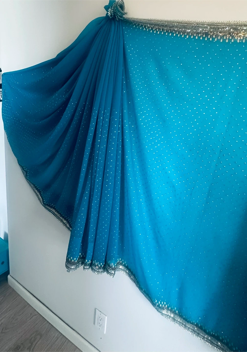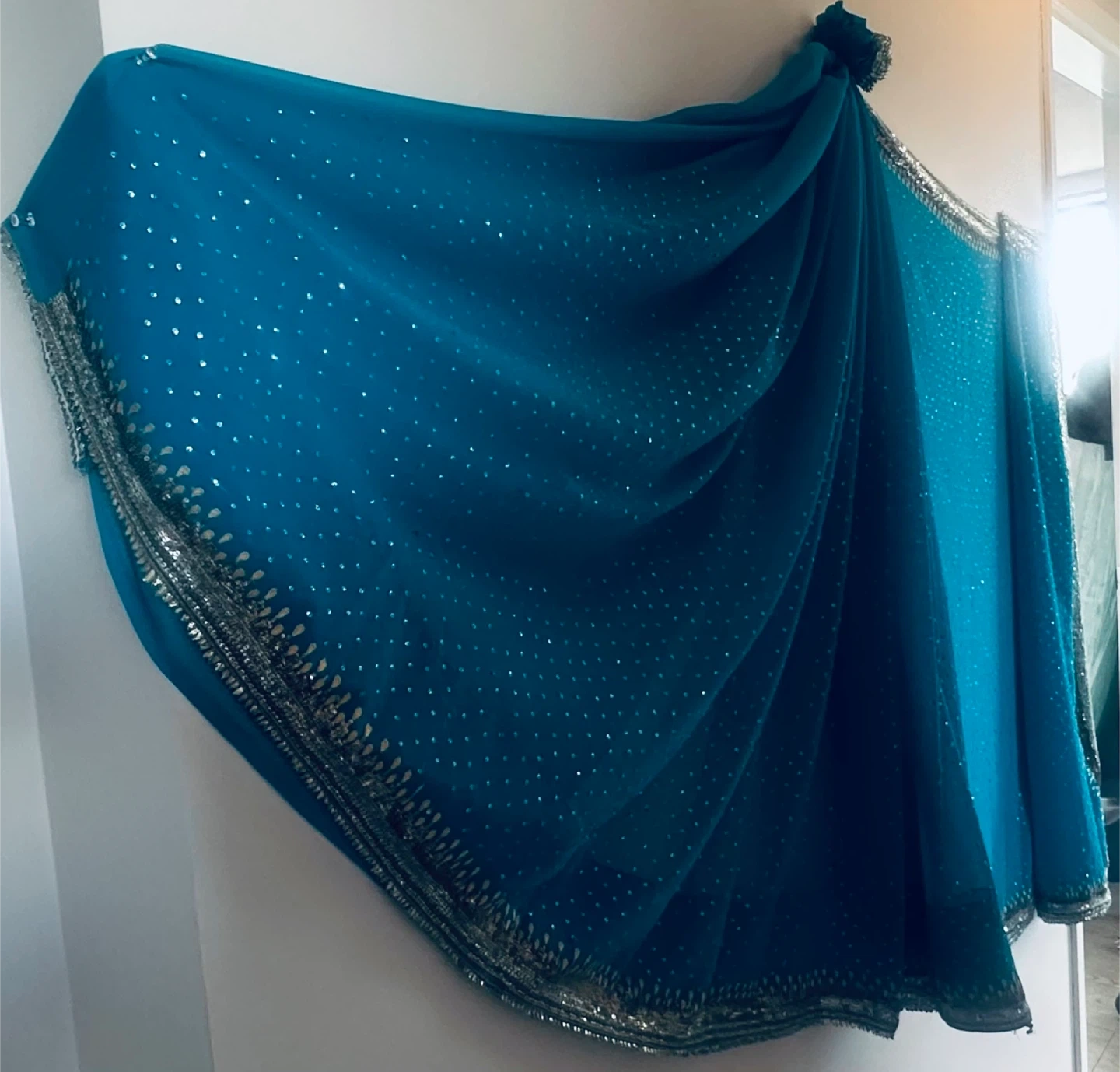 Beautiful blue sari featuring delicate silver embellishments Perfect for special occasions or adding a touch of elegance to any outfit