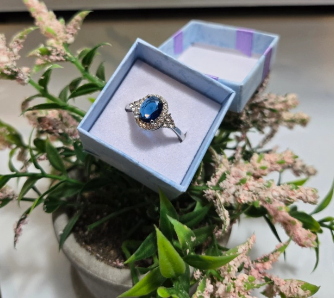 Beautiful costume blue stone ring, perfect for adding a touch of elegance to any outfit! It comes in a cute little box, ready for gifting or keeping safe