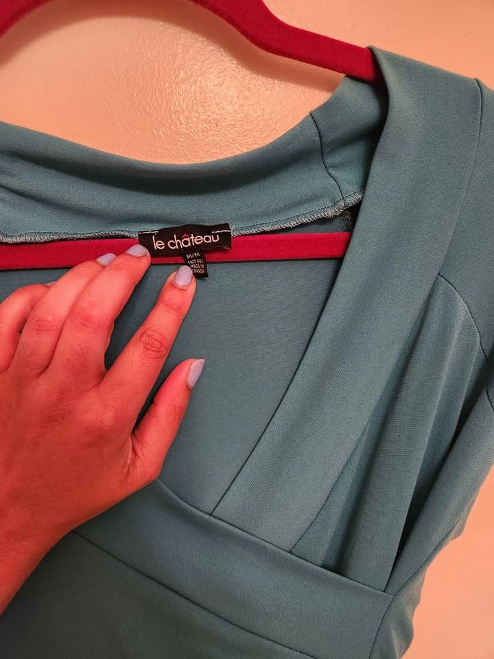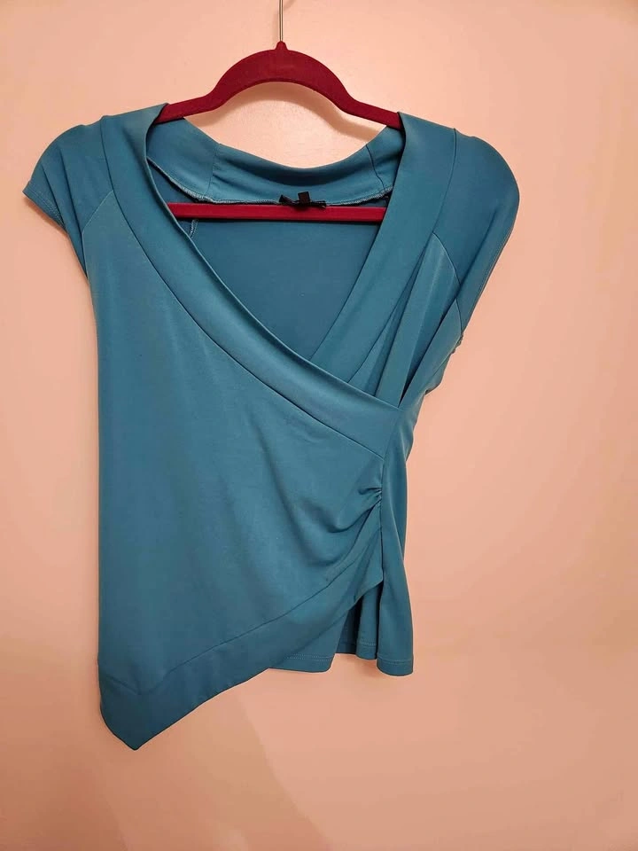 Asymmetrical teal blue top. In medium. Pick up at Lawrence Avenue West and keele st