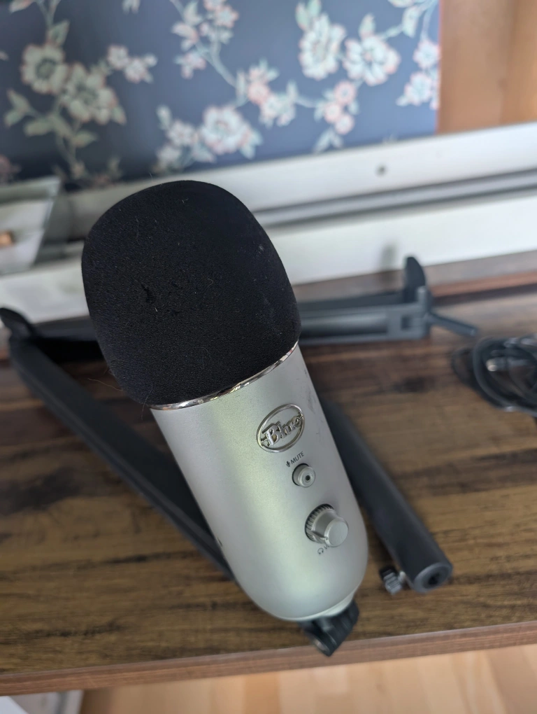 Selling a Blue Yeti USB microphone with its boom arm for desk etc.. It's in excellent working condition and comes with the microphone, boom arm, and cable. Great for podcasting, streaming, or recording music! Plug and play!