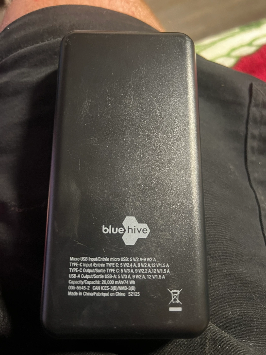 Selling a Bluehive power bank. It has a capacity of 20,000mAh and multiple USB output options for charging your devices. It's in good condition and ready to keep your devices powered up on the go!