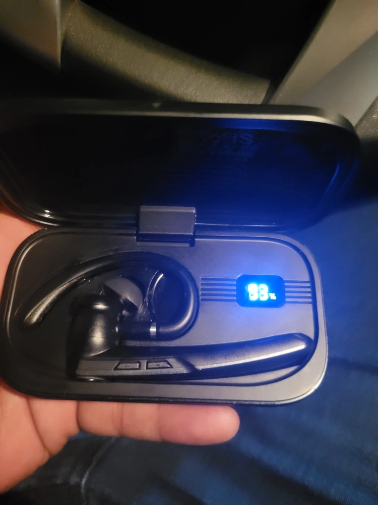 Selling a Bluetooth headset that comes with its charging case. The case displays the battery percentage, so you always know how much power you have left. Great for hands-free calls or listening to music on the go!