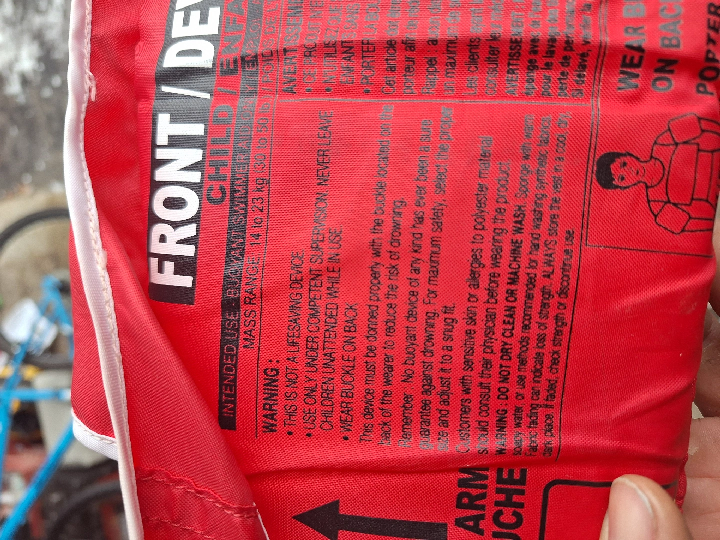 Body Glove buoyant swim aid for children weighing 14 to 23 kg (30 to 50 lbs). life jacket water wings
