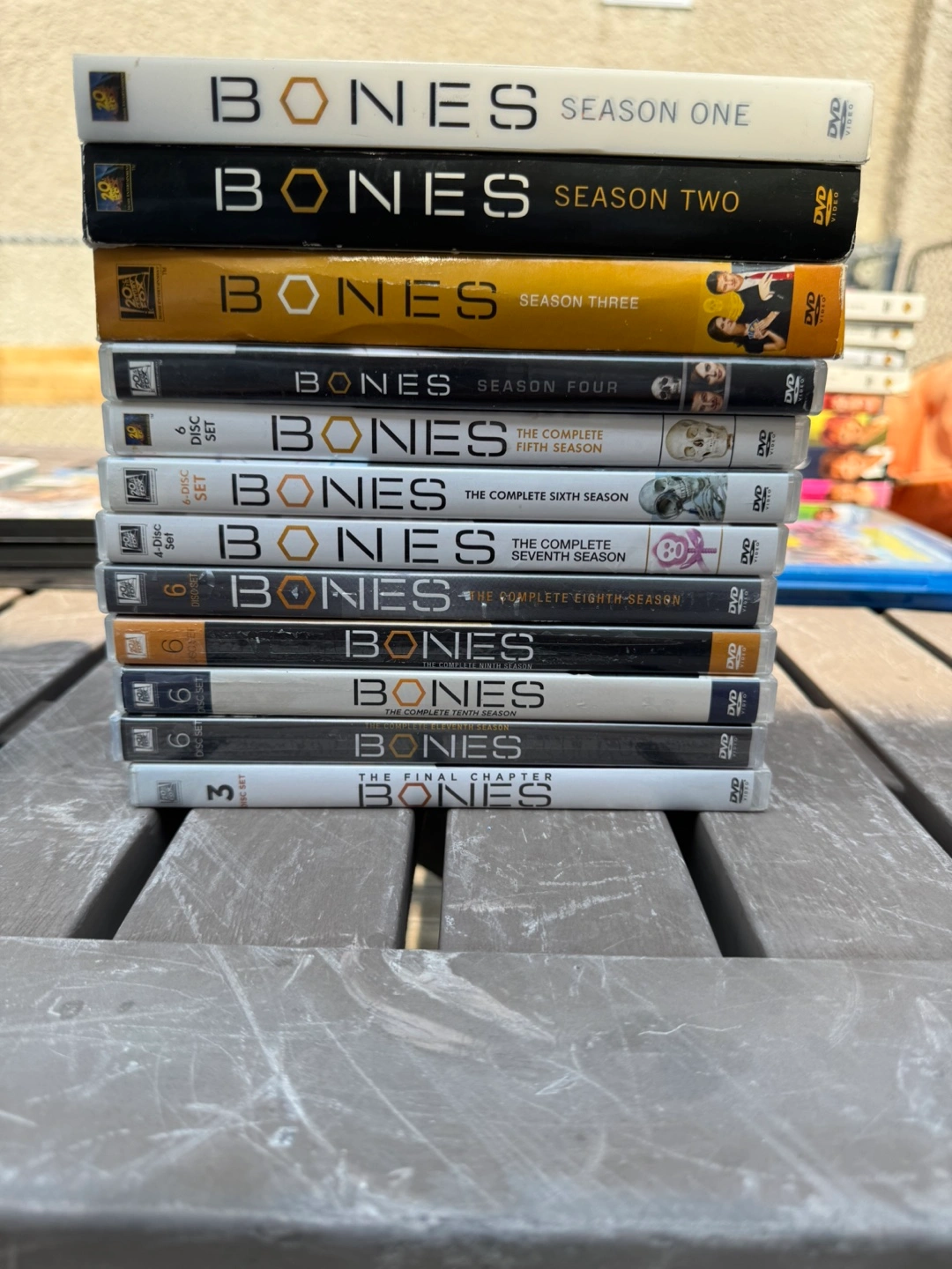 Selling the complete DVD set of Bones! This includes seasons 1 through the final chapter, so you can binge-watch all your favourite episodes