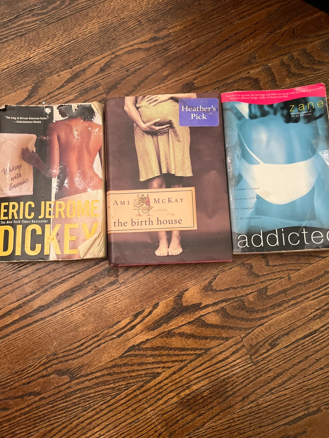 Selling three books: - Waking with Enemies by Eric Jerome Dickey - The Birth House by Ami McKay - Addicted by Zane