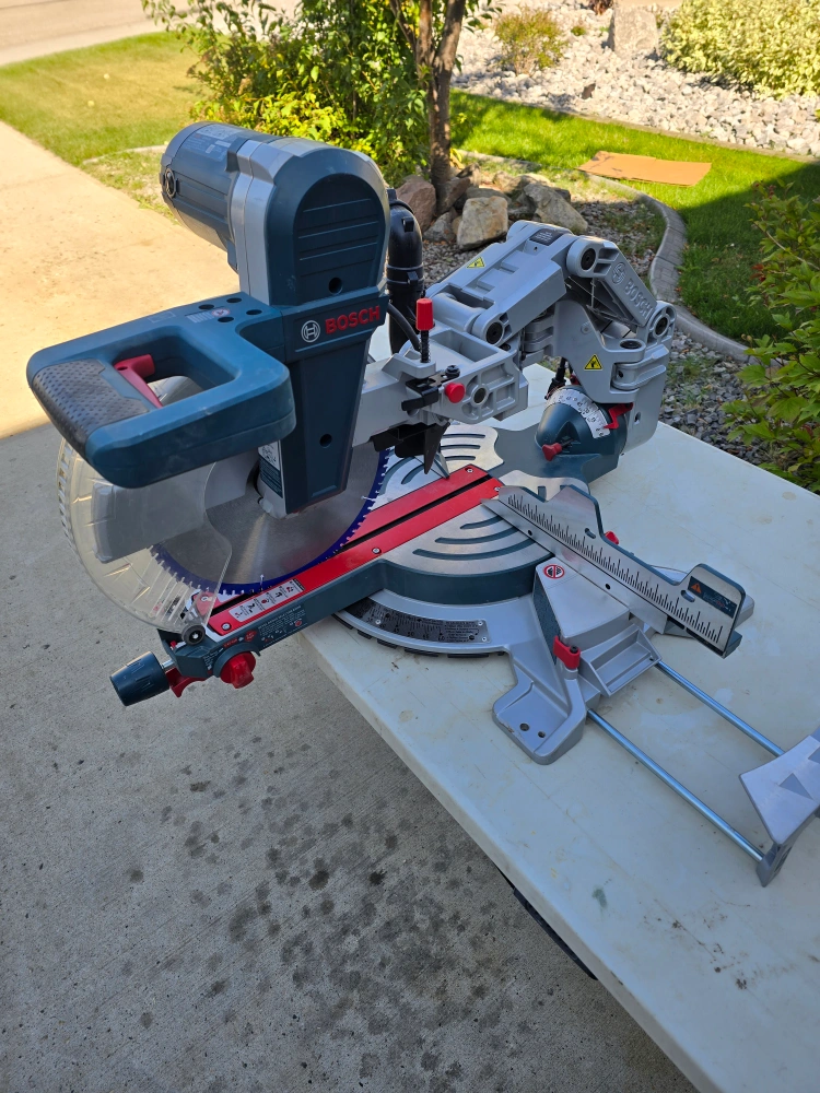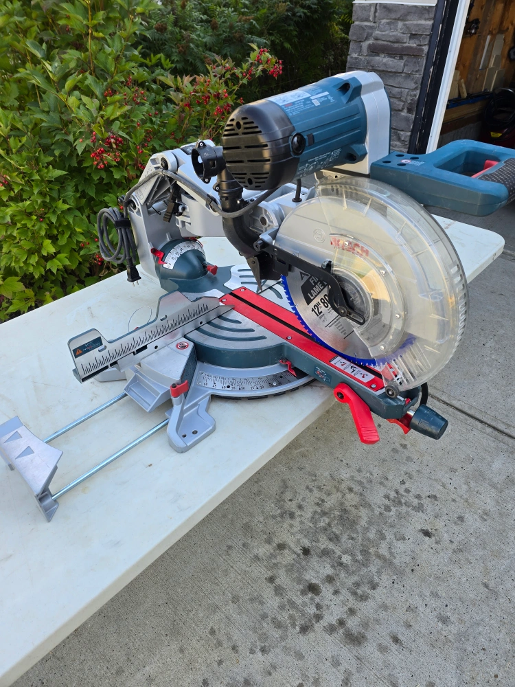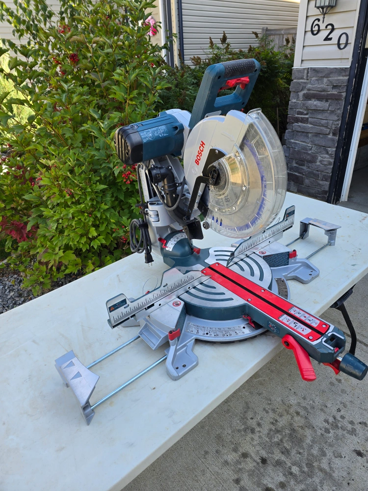 I'm selling a used Bosch Double Bevel Glide Miter Saw GCM12SD ($800 new), a powerful and precise tool for all your cutting needs. This saw features a 12-inch blade and offers exceptional accuracy with its glide mechanism, making it perfect for intricate cuts and large projects. While it's in used condition, it has been well-maintained and is ready to tackle any job you throw at it! Key Features: * 12-inch blade for large cutting capacity * Double bevel design allows for cuts at various angles * Glide mechanism for smooth and accurate operation * Powerful motor for efficient cutting If you were looking to buy this Bosch GCM12SD new from Rona or Home Depot it would set you back $800. I've priced mine competitively considering its excellent working order. Don't miss out on this opportunity to own a high-quality miter saw at a great price! And just a friendly note: if the ad is up, the saw is still available, so no need to ask! Happy cutting!