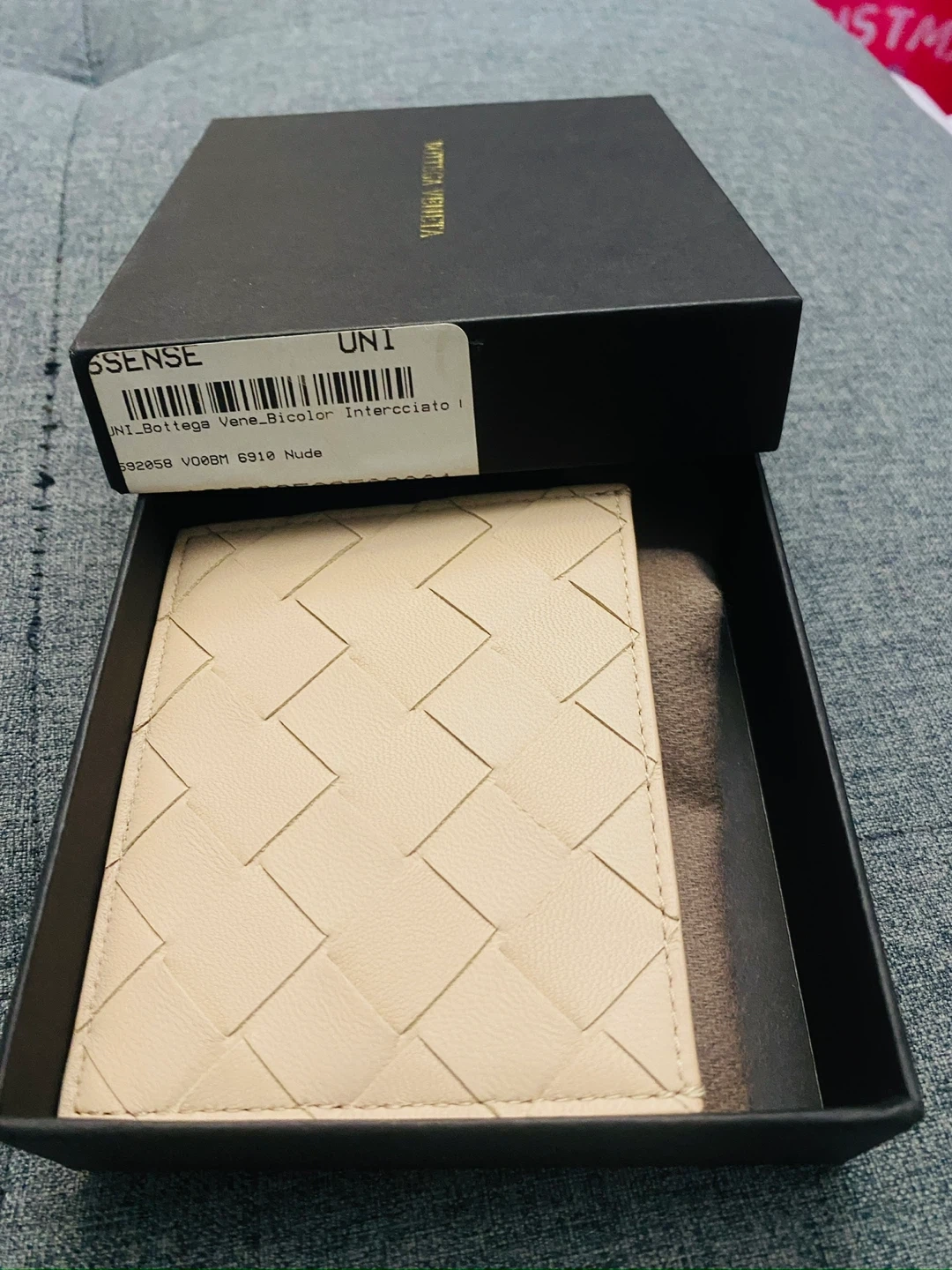 Selling a Bottega Veneta bi-color Intercciato card case. It comes with the box. The card case is a beautiful nude colour with a woven design. It's in great condition and ready for a new home!